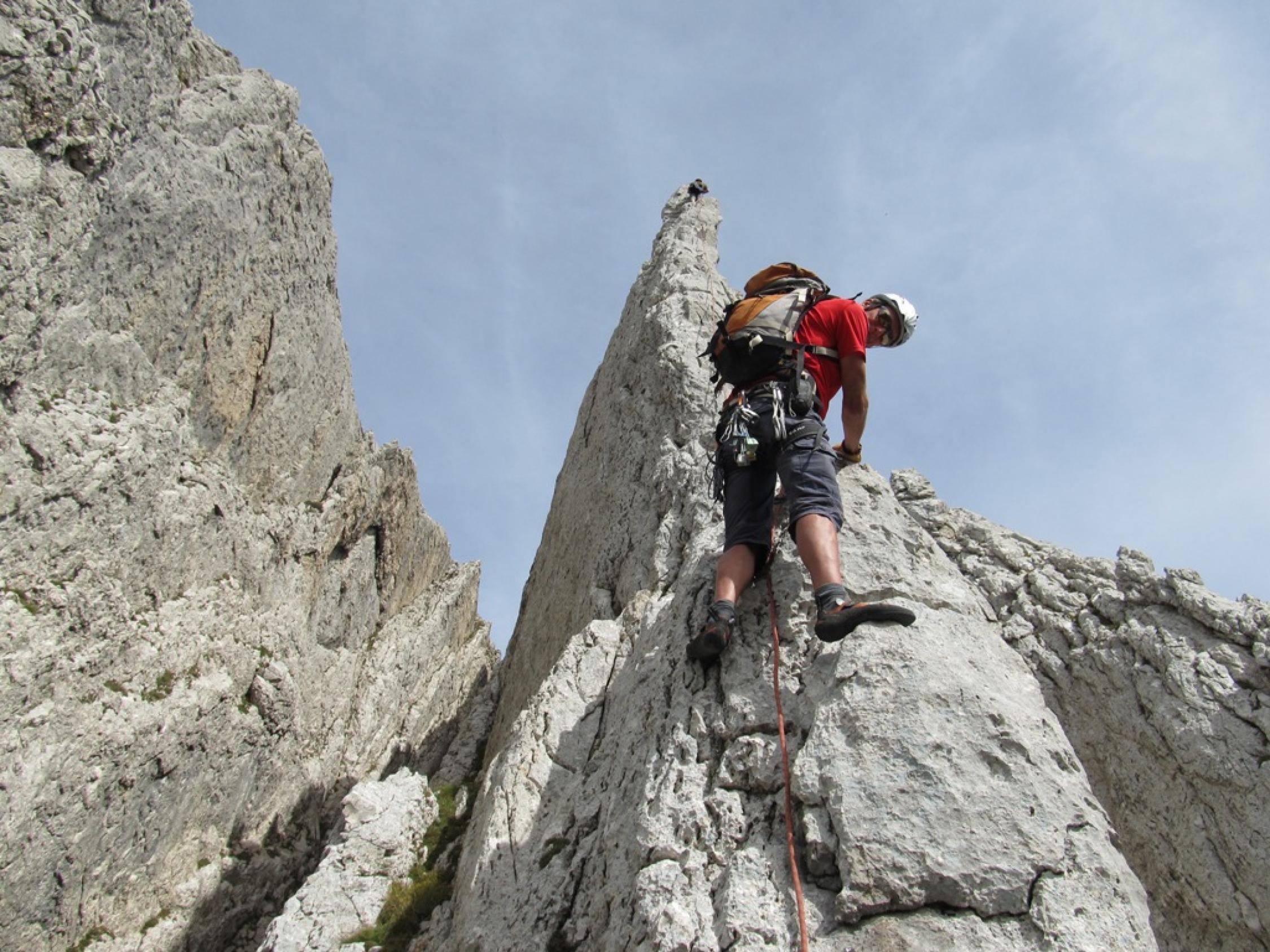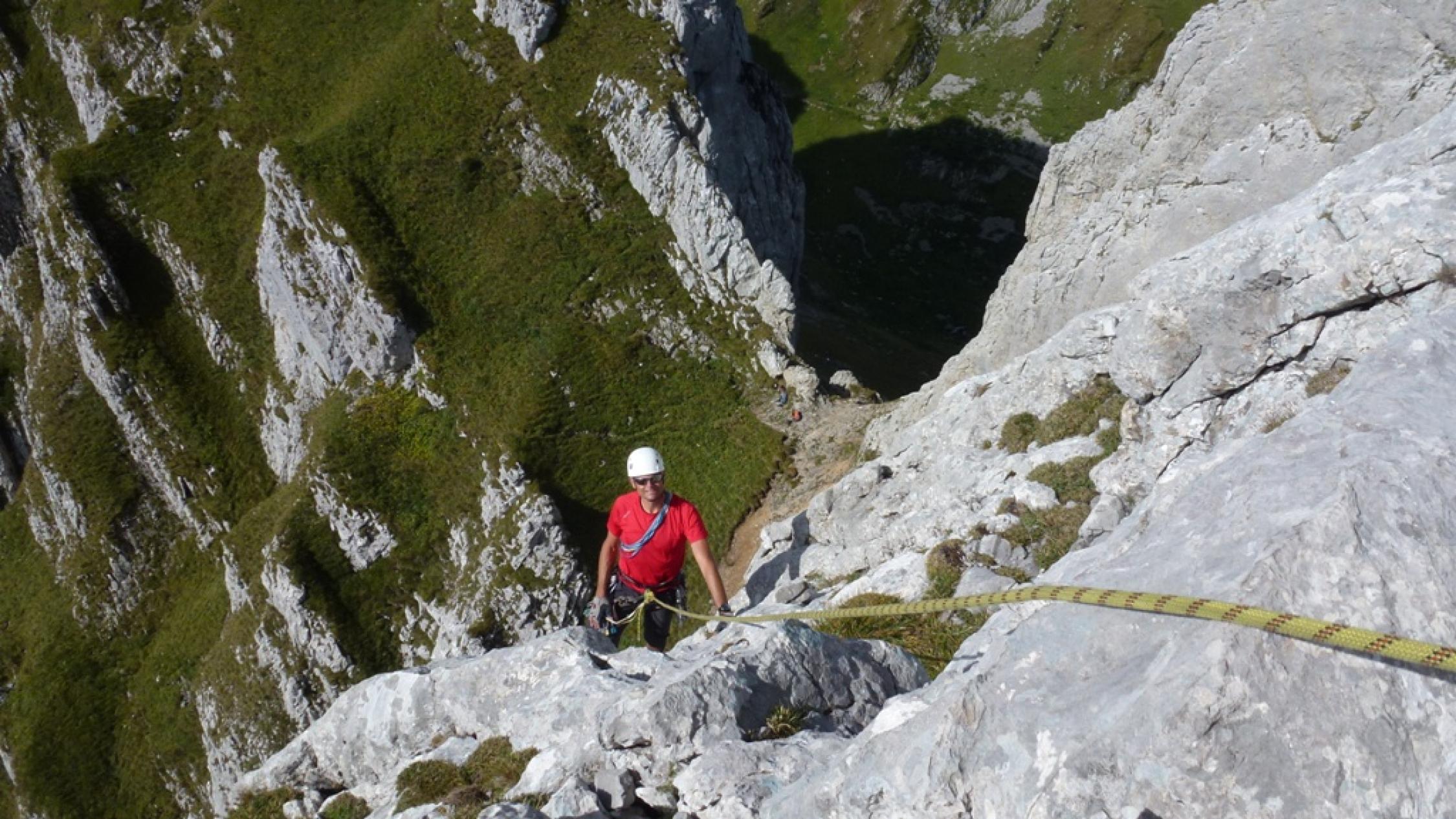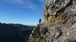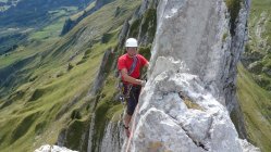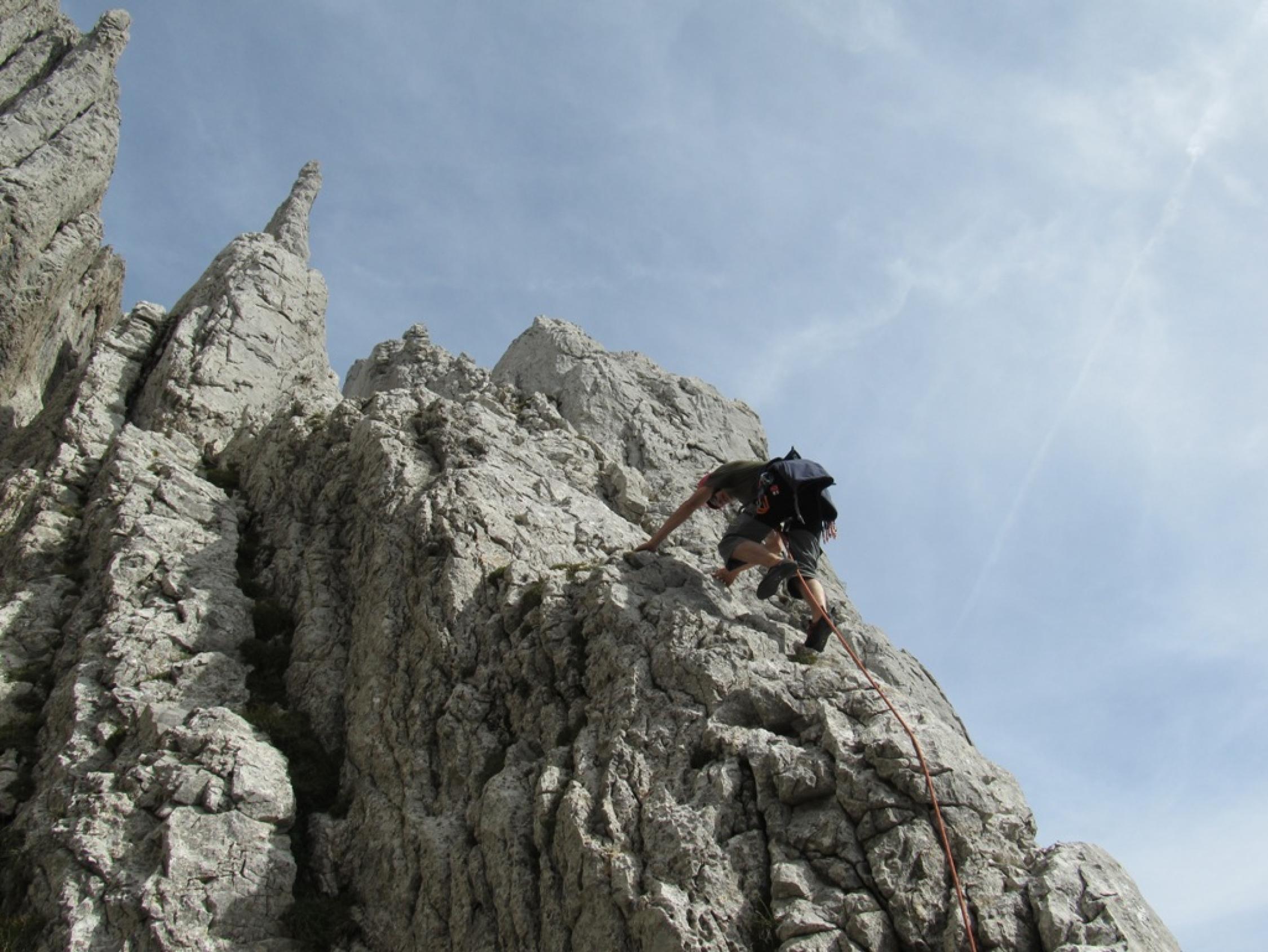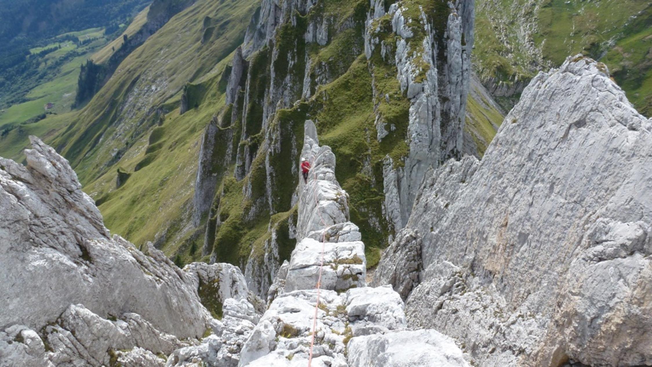 Wir hatten bestes Bergsteiger- und Kletterwetter. Der Fels ist kompakt und fest. Der Schrattenkalk bietet viele Tritt- und Griffmöglichkeiten. Die Schlüsselstelle am Schmalen Südrippli ist schon etwas abpoliert und verlangt beherztes Zupacken. Am Gipfel beeindruckt der wunderbare und erhabene Blick ins Rheintal.