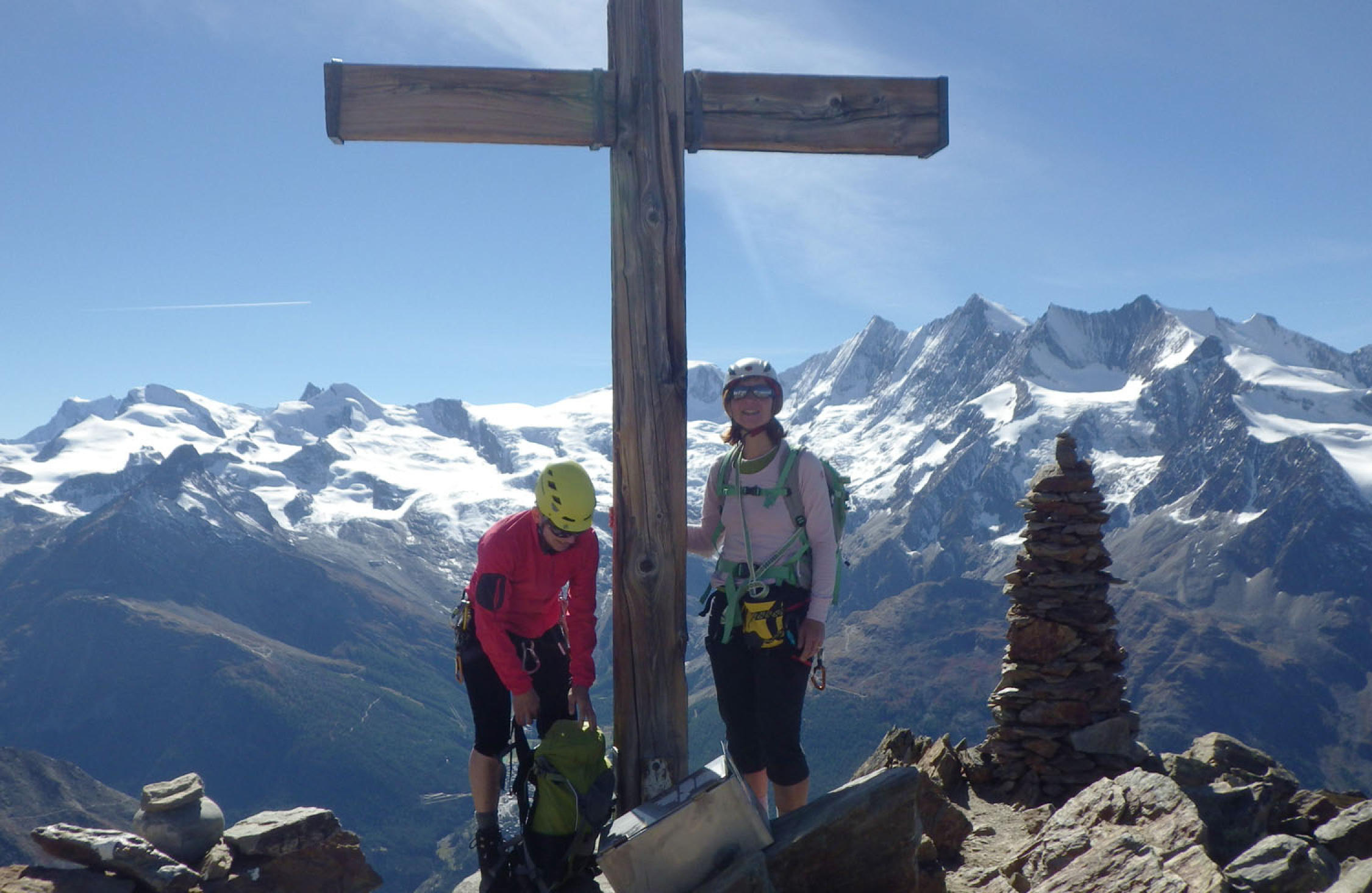Im Herbst fährt die Gondelbahn ab Saas-Grund ab 8 Uhr. Bis zum Einstieg benötigt man eine Stunde. Für das Klettern selbst brauchten wir rund viereinhalb Stunden, wir waren allerdings zu dritt. Für den Abstieg sollte man nochmals rund 1.5 Stunden rechnen. Die letzte Bahn fährt um 16.45 Uhr ab Kreuzboden. Wenn man also nicht allzu viel Zeit mit Pausen und auf dem Gipfel vertrödelt, reicht die Zeit zwischen der ersten und letzten Bahn gut.