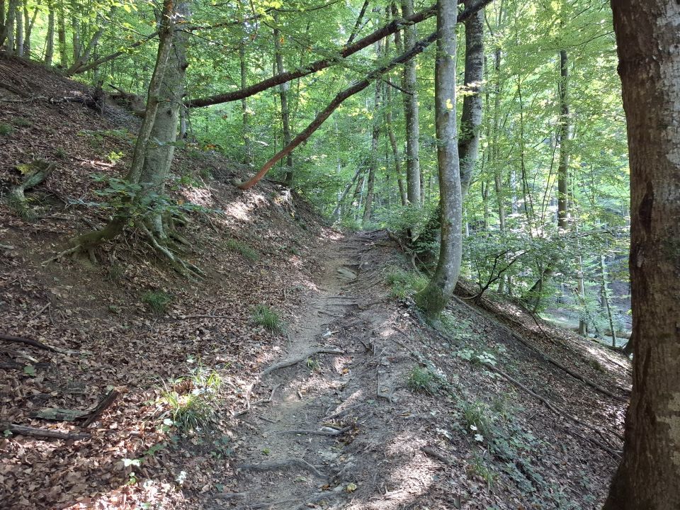 alles trocken, wenig Leute unterwegs, angenehme Temperaturen im schattigen Wald