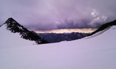 Am Donnerstag hat es leider bis auf 3500 müM geregnet und in der Nacht auf Freitag konnte es zuwenig abstrahlen. Die ganze Schneedecke, rund 40cm, waren durchfeuchtet. Am Freitagmorgen war es leider bedeckt und die Wolken hingen bis auf 3100 müM herunter. Ich wollte eigentlich auf das Sustenhorn. Bis am Mittwoch waren es traumhafte Bedingungen zum Skitouren. Hab mich dann fürs Gwächtenhorn entschieden. Ich hatte die breiten Ski dabei und so war die Abfahrt doch recht gut zu bewältigen.
