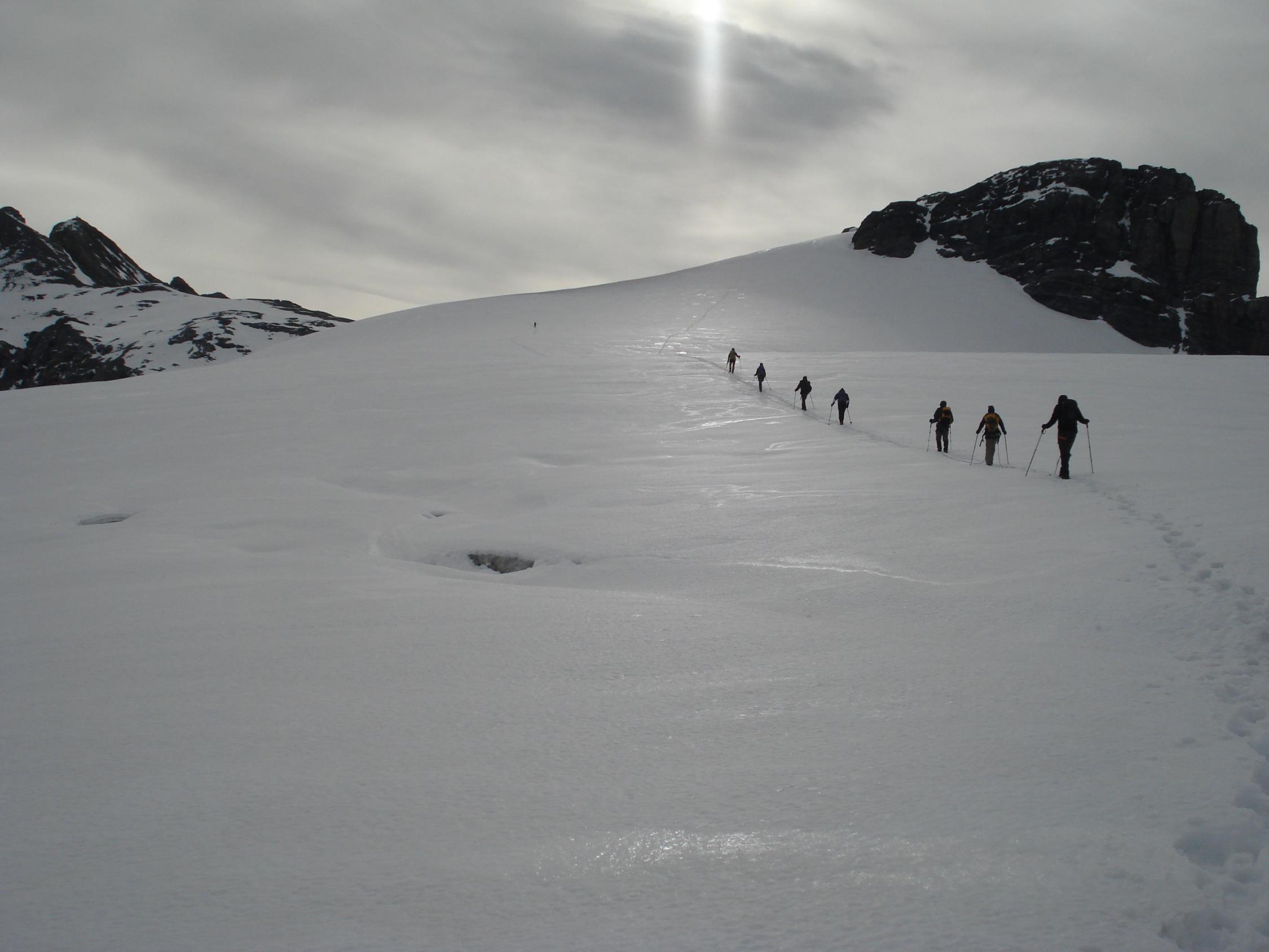 Aufstieg ist top. Iswändli ist im sehr gutem und auch tiefen Trittschnee bedeckt. Steigeisen sind nicht nötig. Aufstieg über den Gletscher und Vorgipfel kein Problem. Abstieg vom Vorgipfel zum Hauptgipfel ist etwas heikel, weil der Grat teilweise noch mit Schnee bedeckt ist. Aufstieg auf den Hauptgipfel dank den Ketten kein Problem