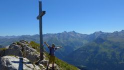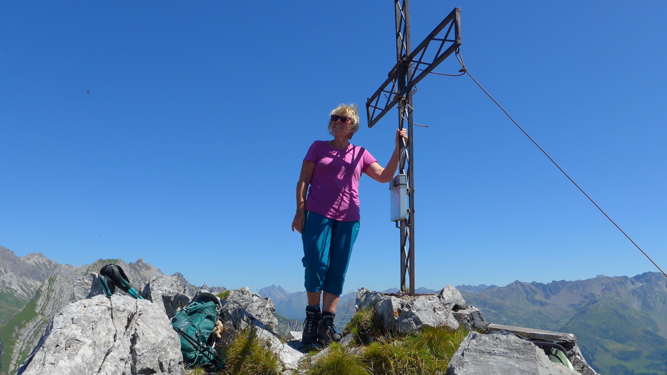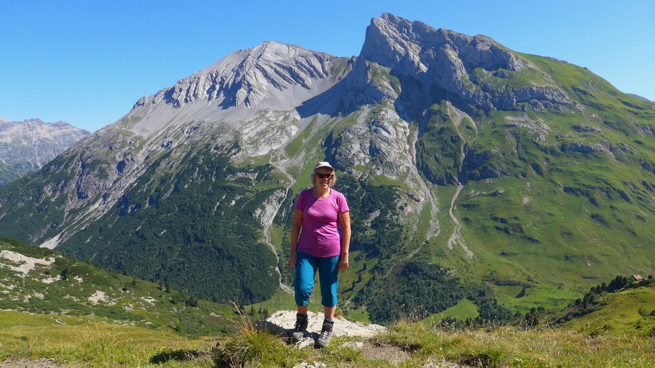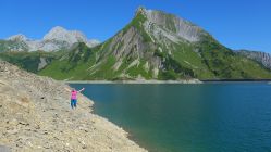 Der Abstieg ins Plattnitzerjoch ist unschwierig und gut einzusehen. Pfadspuren führen zwischen Bergwiesen und Felstrümmern, landschaftlich absolut grossartig, auf den Gipfel der Glongspitze. 1300 Höhenmeter geht es jenseits ins Klostertal hinab. Dieser Abstieg bleibt uns heute glücklicherweise erspart und so gelangen wir über den Dalaaser Schütz wieder zurück zum Spullersee. Hier zögert Vroni nicht lange, springt hinein und geniesst das kühle Nass des Sees :-)