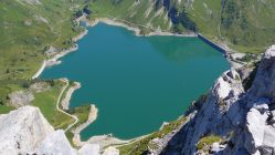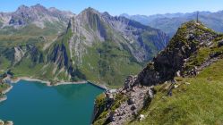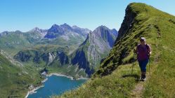 Zunächst wandern wir vom Spullersee zum Dalaaser Schütz auf dem bekannten Fernwanderweg E4. Richtung SO geht es zu einer Jagdhütte und südseitig durch einige Lawinenverbauungen zum aussichtsreichen Gipfel der Plattnitzerjochspitze. Nirgendwo sonst ist der Blick auf den Spullersee hinab so atemberaubend wie hier.