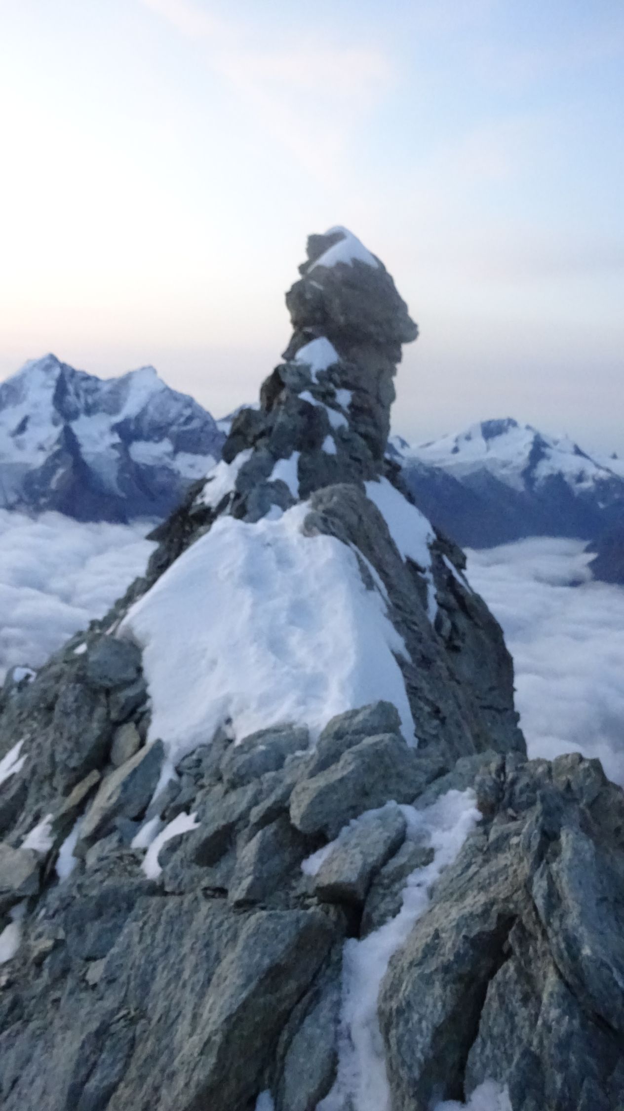 gute Verhältnisse am Grat mit etwas Restschnee ( überfroren)