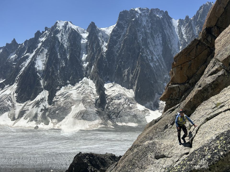 Aufstieg: Wir haben die Strategie gewählt, am Vorabend nach Argentiere anzureisen, und dann mit der ersten Bahn hoch zum Plan Joran. Achtung: Offiziell fährt die Bahn nicht, aber vor Ort gibt es für Bergsteiger Extrafahrten. Von Plan Joran dann zur Hütte. Hier beachten, dass der Weg aktuell orographisch rechts (d.h. auf der Chardonnet-Seite) des Gletschers verläuft und mit Steinmannli markiert. Steigeisen nicht nötig.