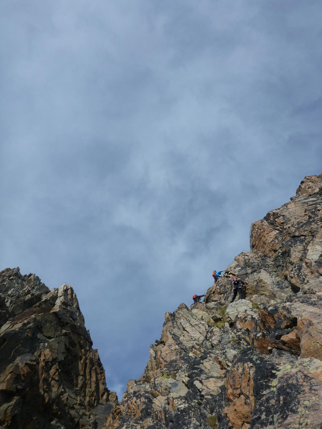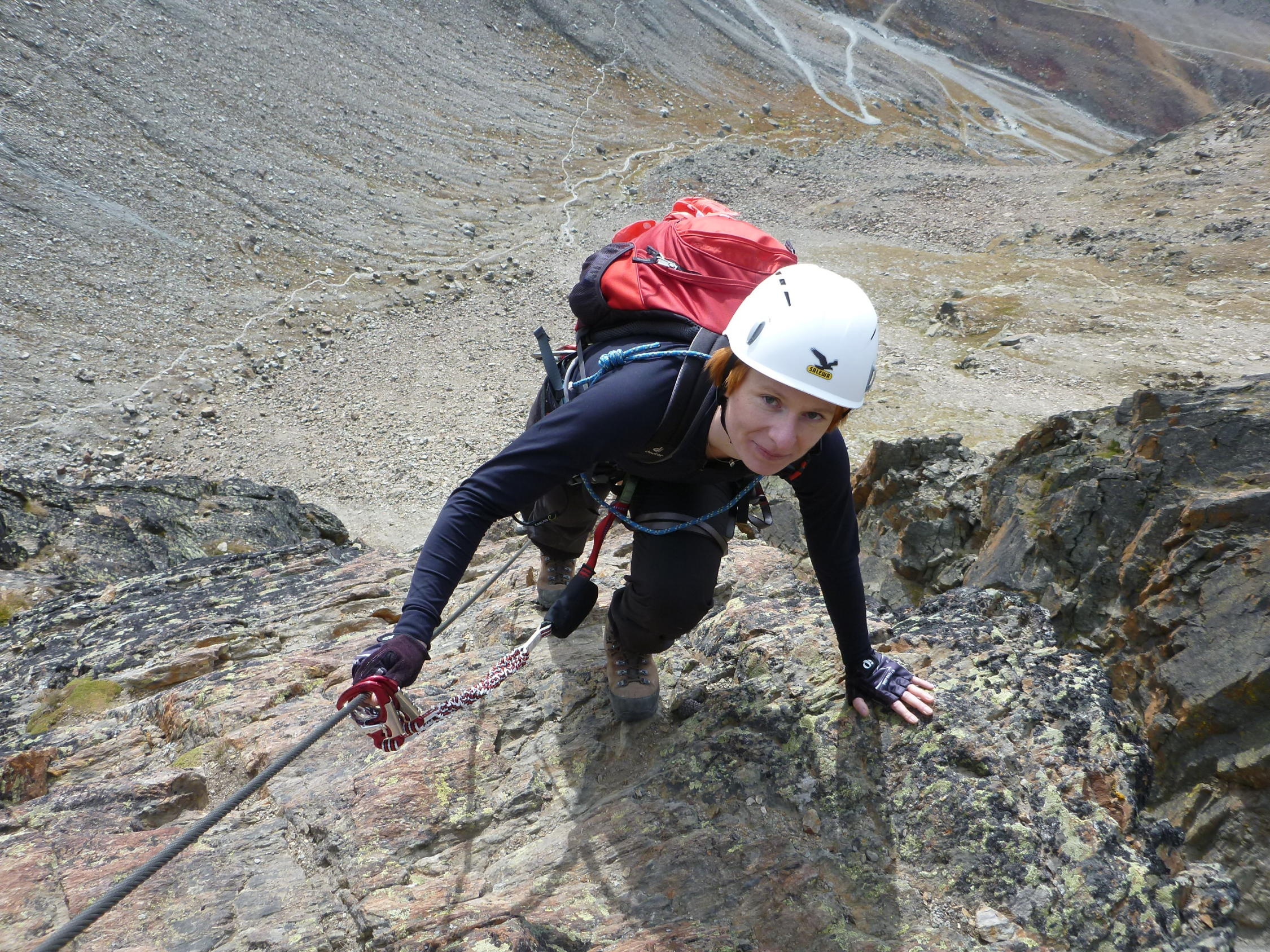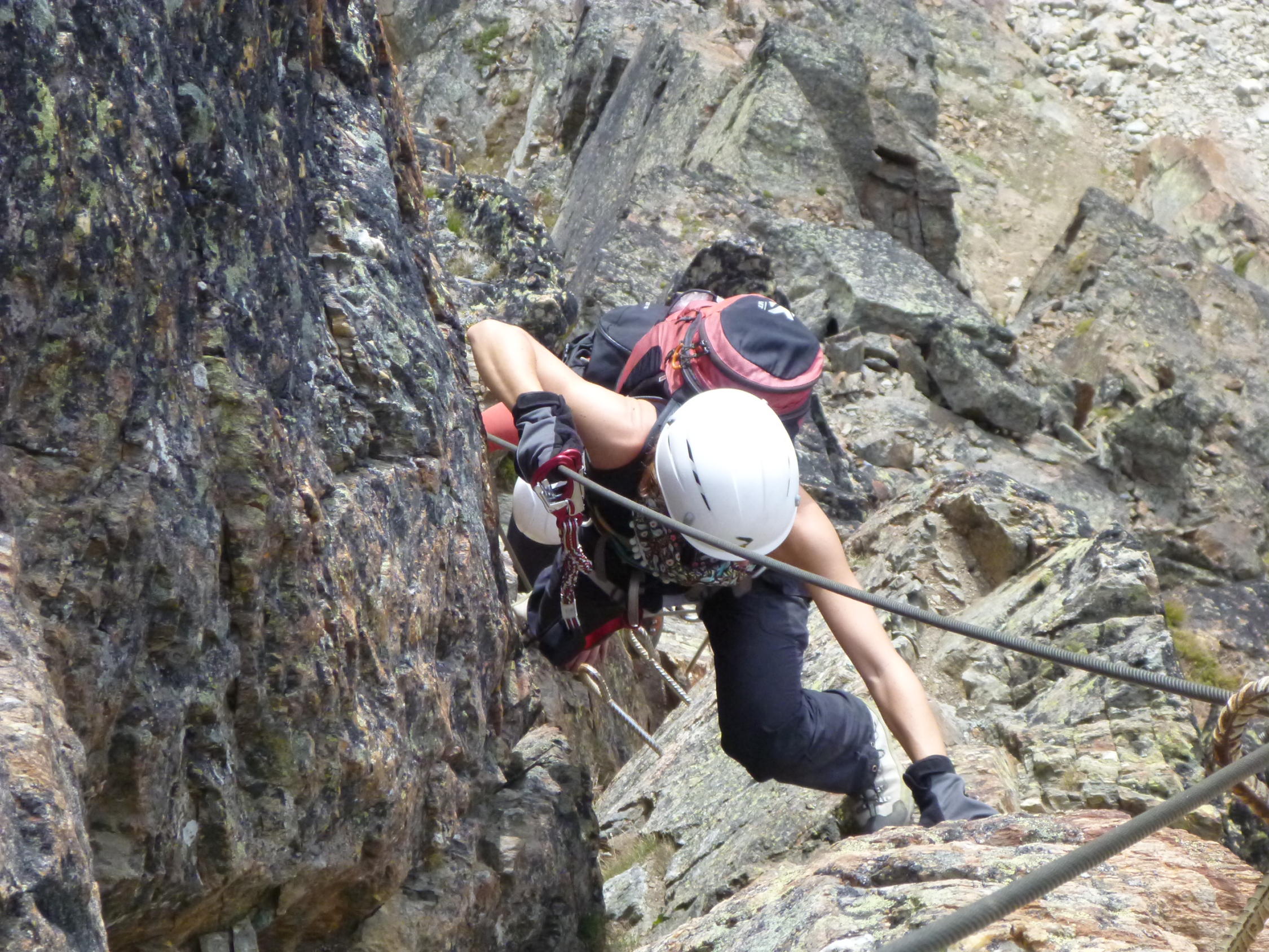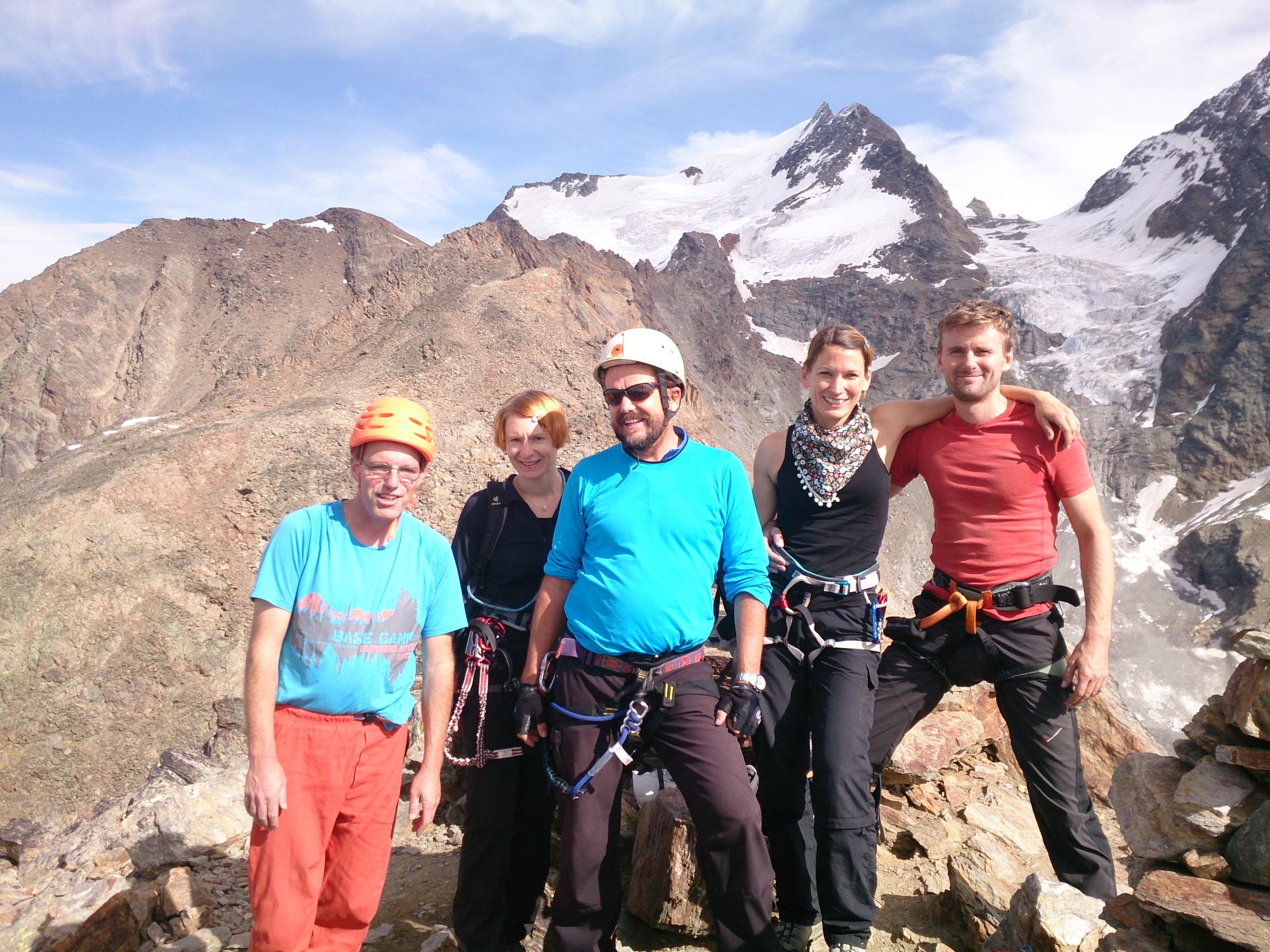 Einfache Kletterei in alpiner Umgebung, umringt von den 4Tausendern, an einem Stahlseil, um das man sich nicht weiter zu kümmern braucht, nach oben, das bietet der Klettersteig Jegihorn.