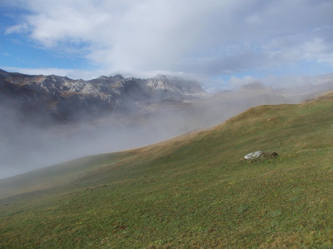 Einsame wilde Hochgebirgswanderung, die an Bergeinsamkeit nicht mehr zu übertreffen ist. Man stellt sich vor, in einer mondähnlichen Landschaft unterwegs zu sein. ( ab 2600m ) Die Tour erfordert einen guten Orientierungssinn. Es hat nur wenige Wegspuren und Steinmännlein. Ich habe einige Steinmänner gebaut.