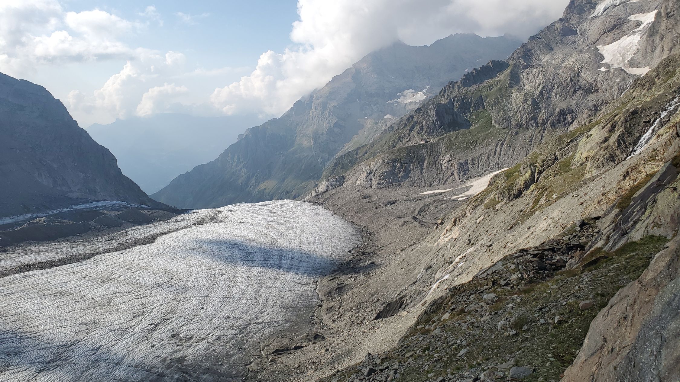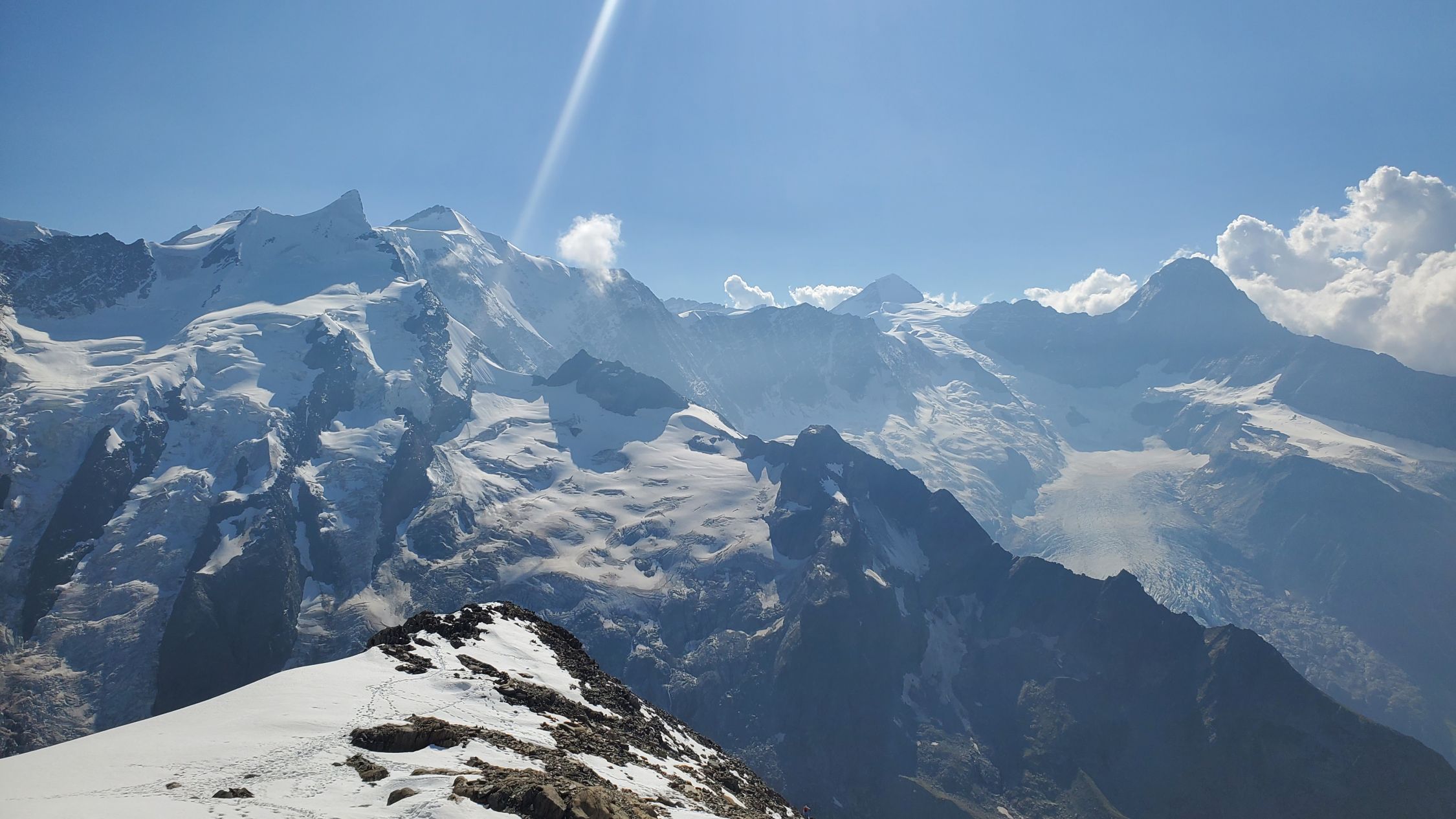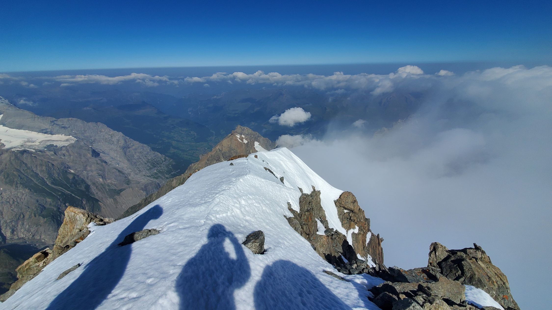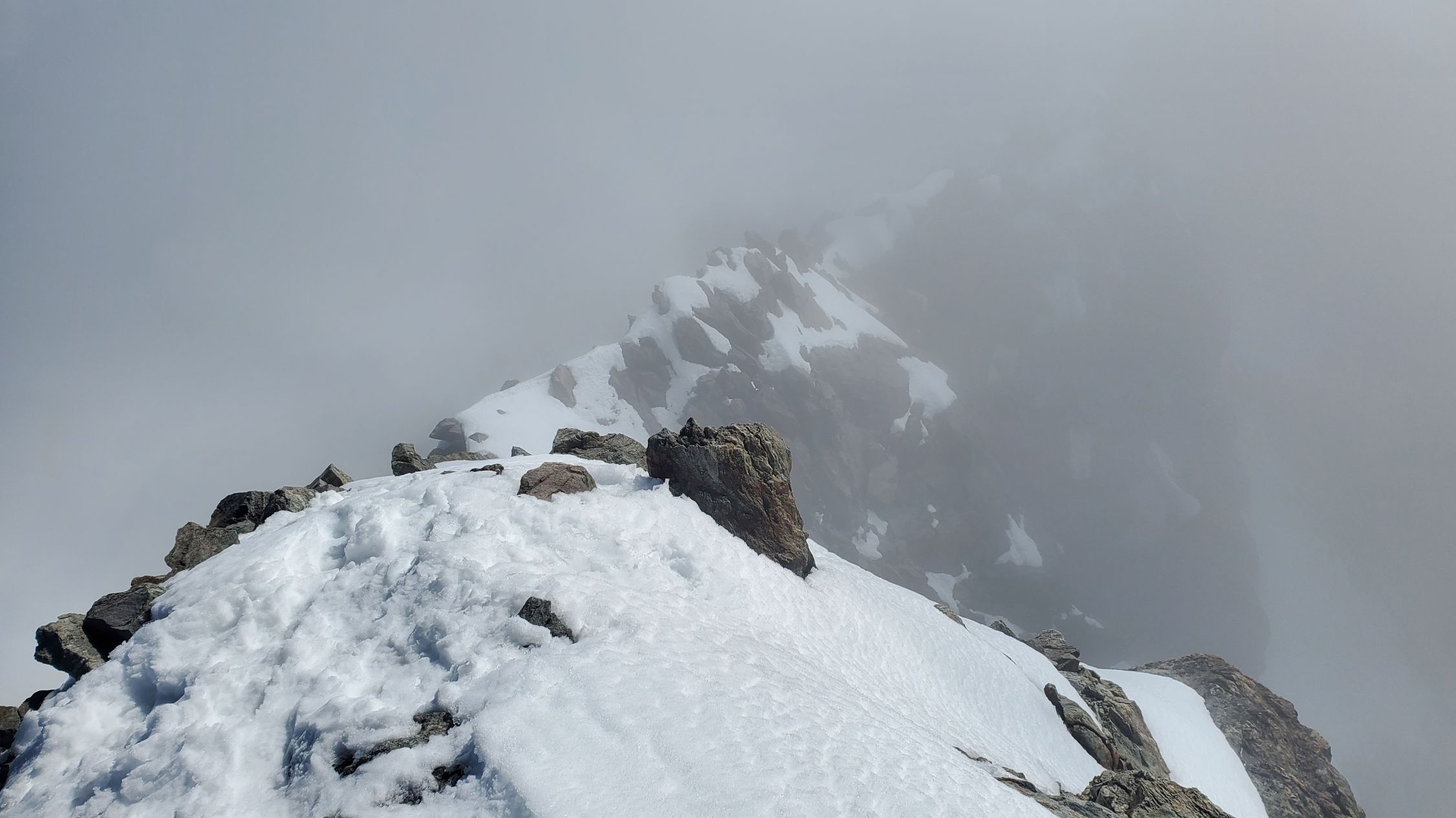 gute Verhältnisse, es hatte noch einiges an Restschnee, v.a. auf der Schulter - insbesondere im Abstieg könnte dieser aufgrund der Erwärmung heikel werden, ging bei uns aber ganz gut; Klettern nach dem Gletscher bis zum Gipfel ohne Steigeisen möglich, macht aktuell mit auch keinen Sinn; beim Einstieg anders als wie in der Routenbeschreibung weiter links in den Fels eingestiegen (hier gibt es auch für den Abstieg eine Abseilpiste);
