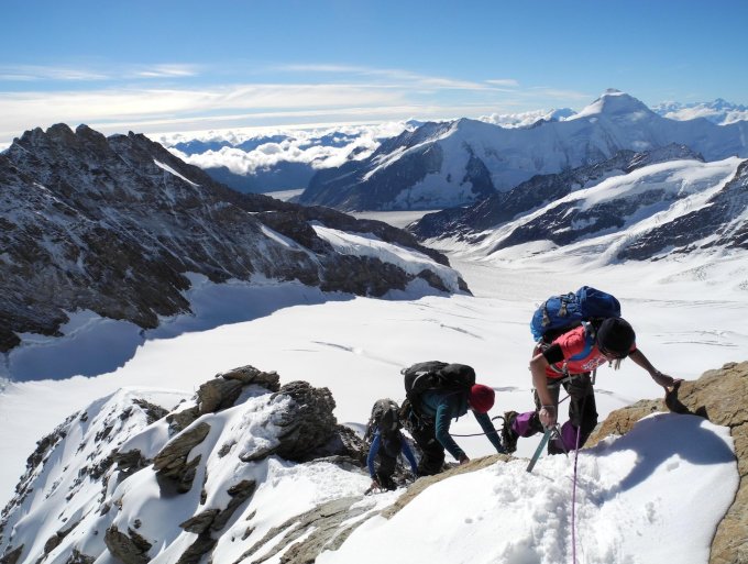 Im Juli und August wird Eiger, Mönch & Jungfrau und Region von dutzenden von Seilschaften besucht. Leicht sonderbar anmutend wenn am schönsten Oktobertag und besten Verhältnissen nur drei Seilschaften unterwegs sind...