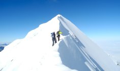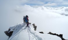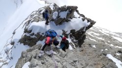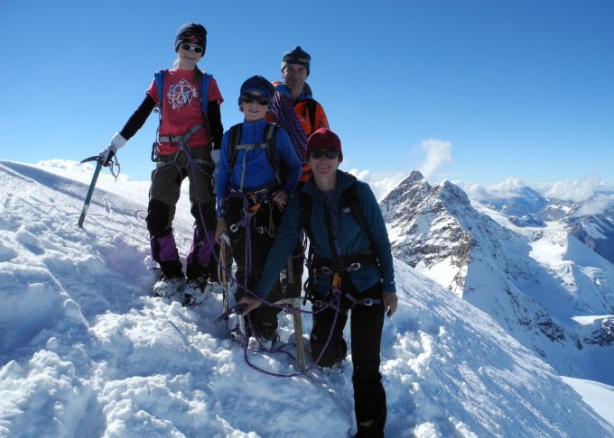 Sehr gute Verhältnisse! Die Route vom Vorgipfel zum Gipfel ist wie gewohnt für die Jahreszeit hart und ausgesetzt.