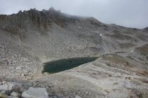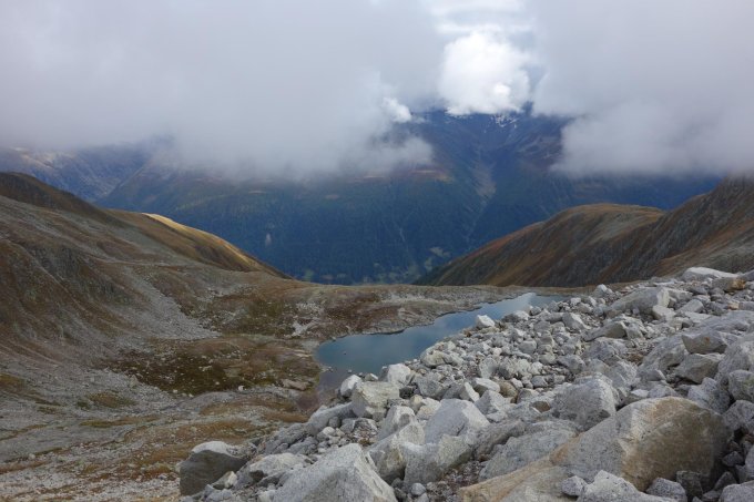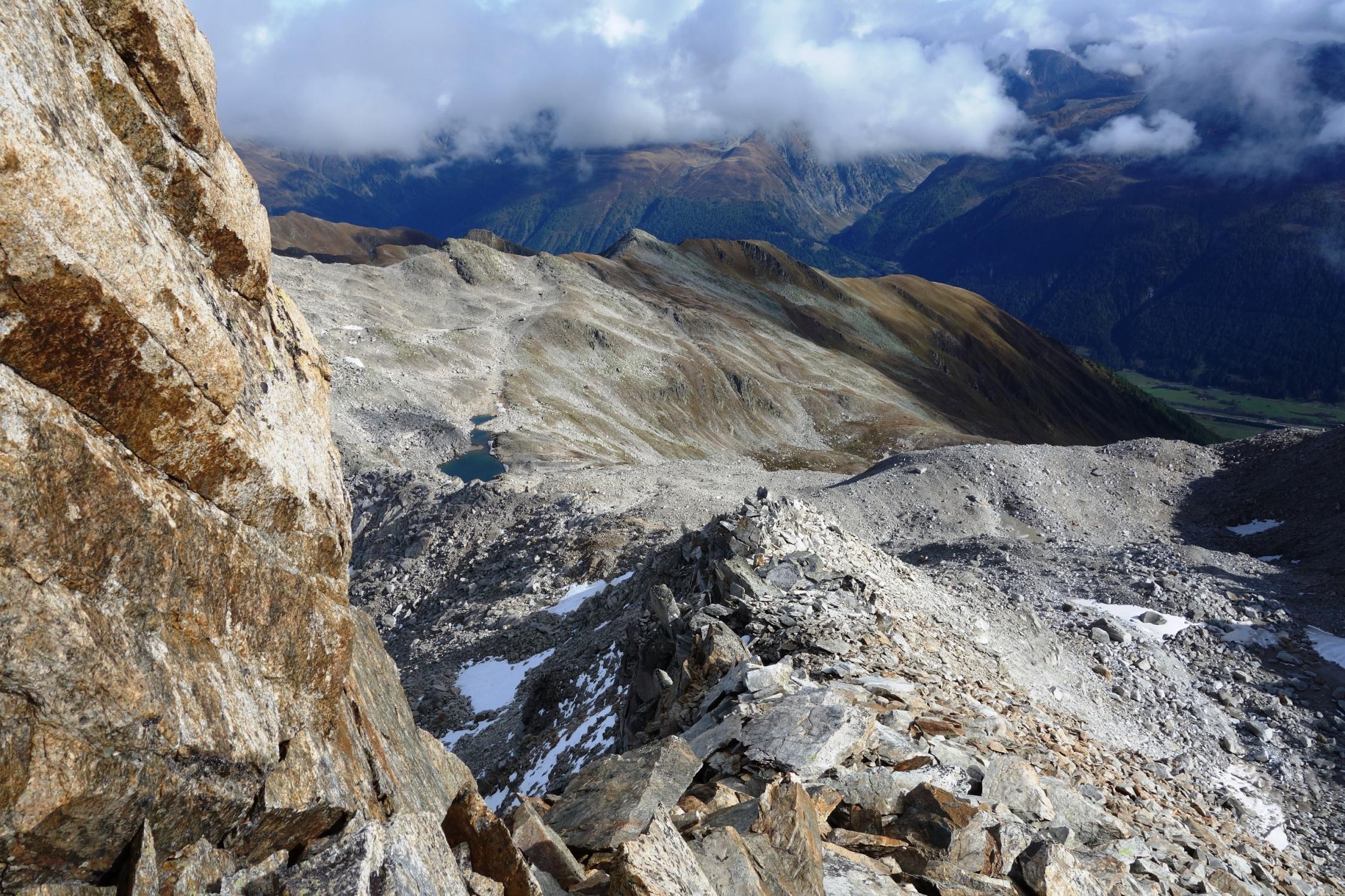 Die Steinmänner oberhalb der namenlosen Seelein (Pt. 2725) hinauf bis zum Ostgrat helfen in dieser urtümlichen, öden und stellenweise etwas unübersichtlichen Steinwüste sich bestens zu orientieren und zurechtzufinden.