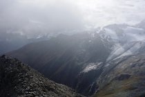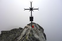 Die Gipfelaussicht konnten wir nur ansatzweise geniessen, der Gipfel und die umliegenden Berge waren nebelverhüllt und es flockte zeitweise ganz leicht. Erst auf dem Abstieg zeigte sich das eindrückliche Panorama, als es plötzlich aufklarte.
