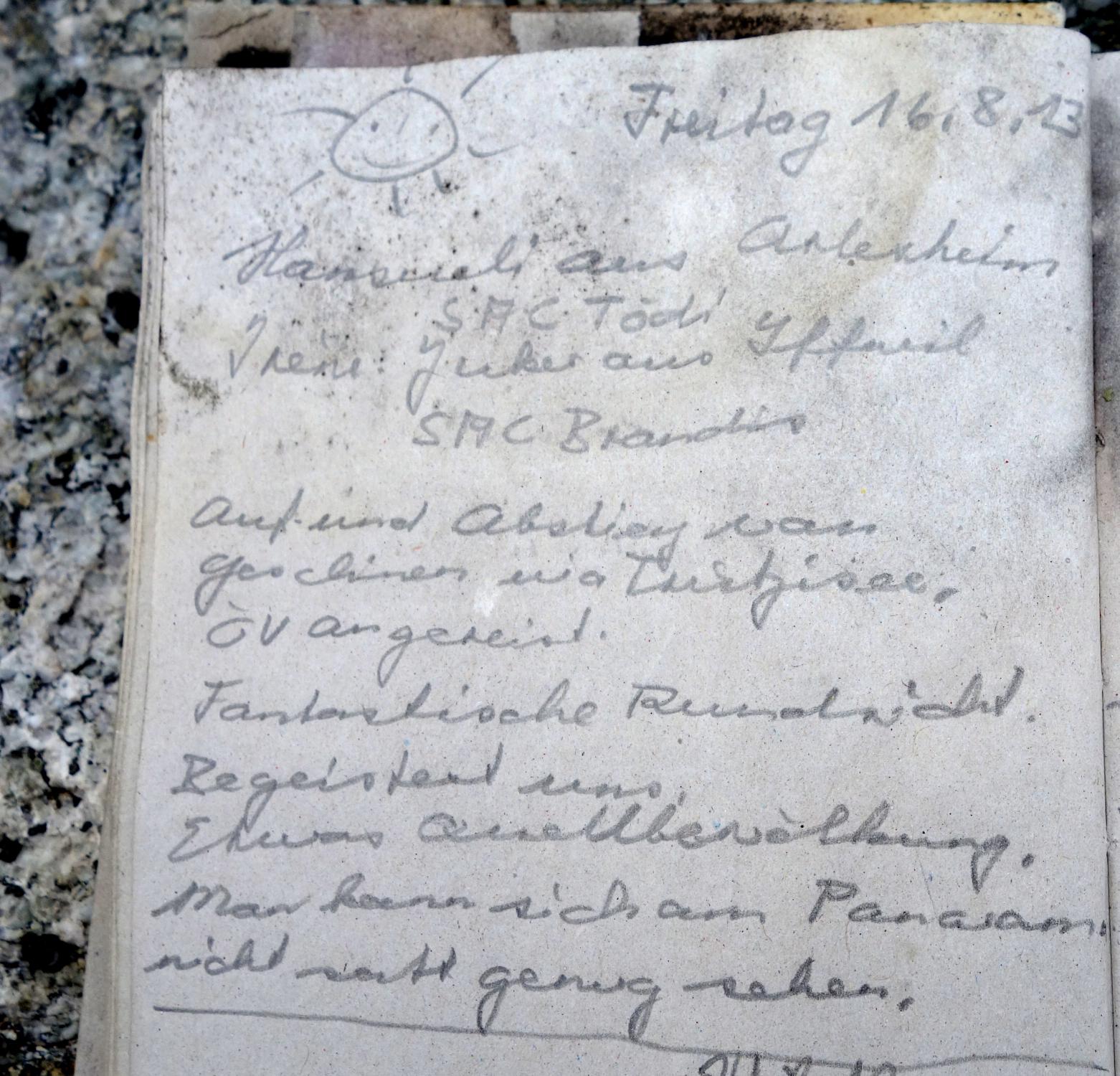 Wir sind zum Andenken an unsere liebe und unvergessliche Freundin Irène Juker aufs Löffelhorn gestiegen. Den lange gehegten Wunsch von Irène, auf diesem Gipfel stehen zu können, erfüllte sie sich noch Mitte August unter kaum vorstellbaren Strapazen, denn nur 3 Wochen später ist sie an ihrem schweren Krebsleiden gestorben.