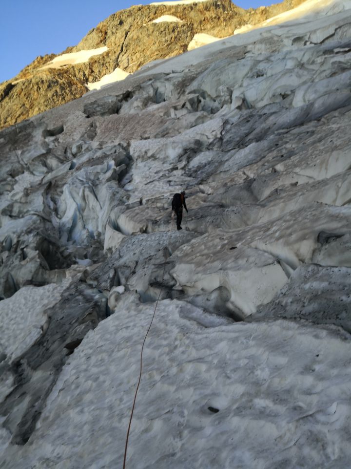 Die Spaltenzone direkt unter dem Einstieg wird schwieriger zu passieren (siehe Bilder).