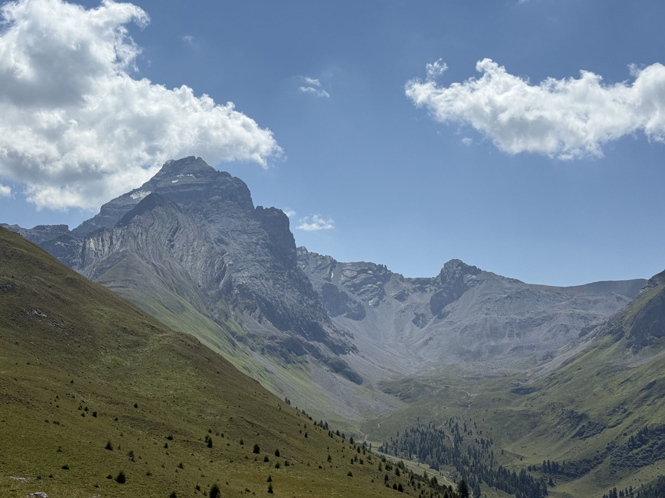 Einfache, lange Tour auf das Kli Ross oberhalb Filisur auf Route zur Chamonna d‘Ela CAS, T3. ÖV Tour, Start beim Stromwerk Filisur 10 Uhr, 20 Grad, blauer Himmel, windstill. Zuerst dem Wanderweg gefolgt und später auf Alpstrasse hoch, ein Stück zur Alp Prosot hat mich ein Bauer mit dem alten Heulader mitgenommenen. Ab Höhe 2000 auf schönem Wanderweg mässig steil zum schönen Aussichtsgipfel. Abstieg wie Aufstieg.