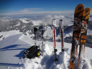 da noch etwas saft in den beinen, sind wir via nordwestgrat auf die bürglen "gewandert". die ski liesen wir bei den ersten felsen im pass (birehubel-bürglen) zurück.