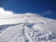 in der letzten abfahrt war die Oberfläche des Schnees bereits leicht gedeckelt und unten auch stark durchfeuchtet.