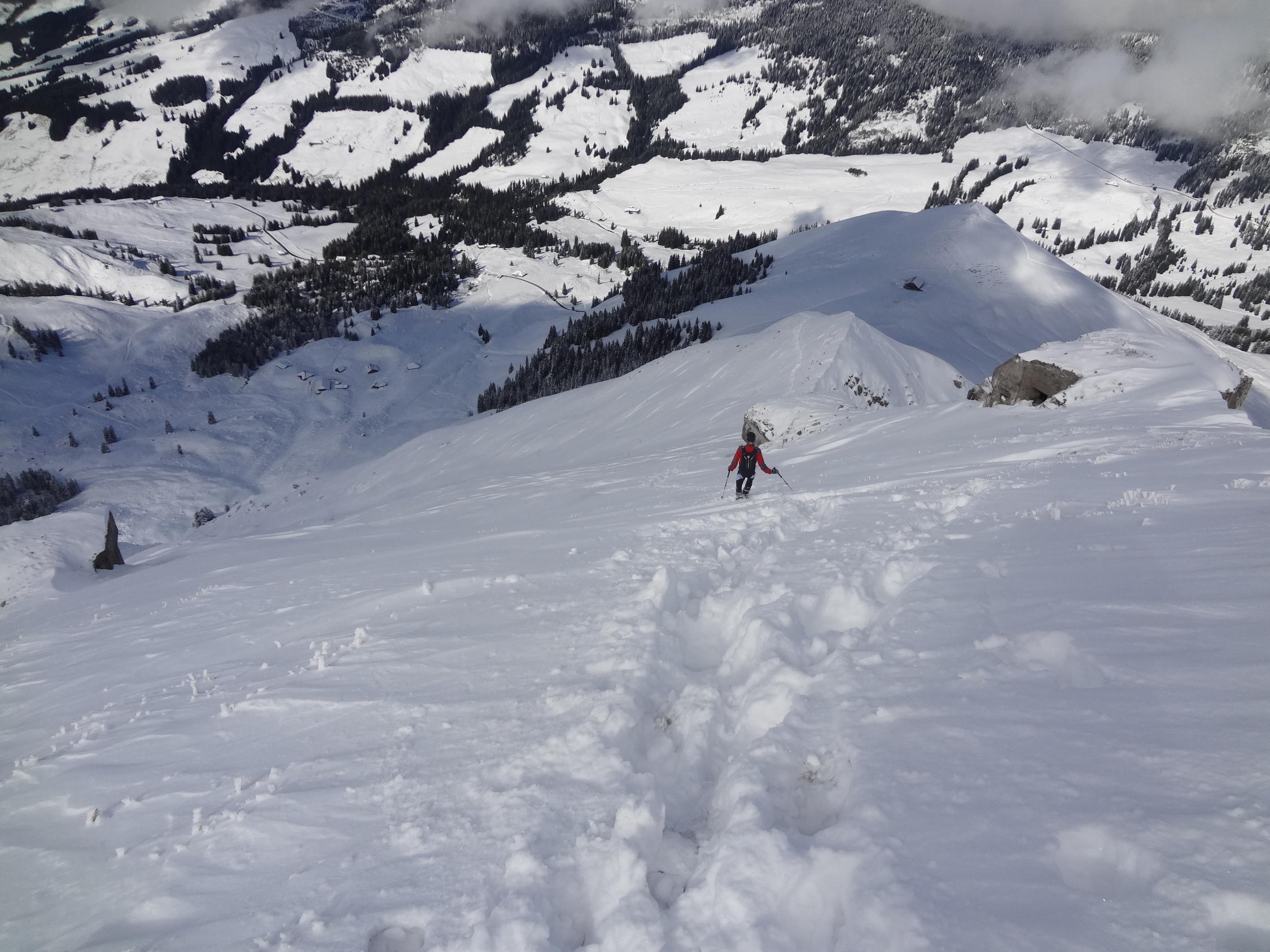 jedoch ist eine defensive Fahrweise angebracht. es hat unter diesen 20-30cm puder noch allerhand, wo die ski einhängen können ;)