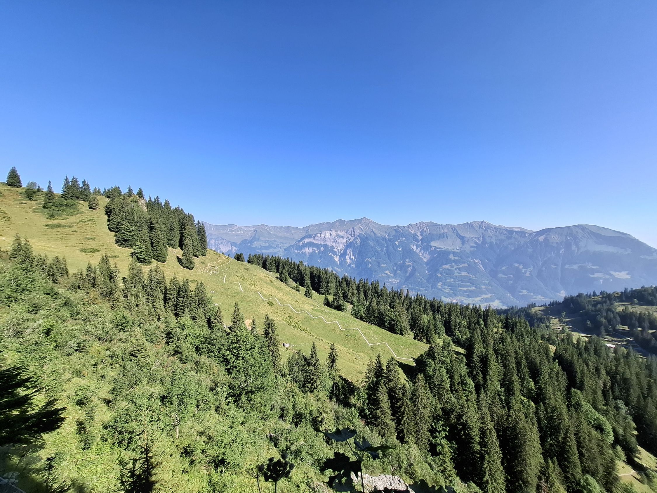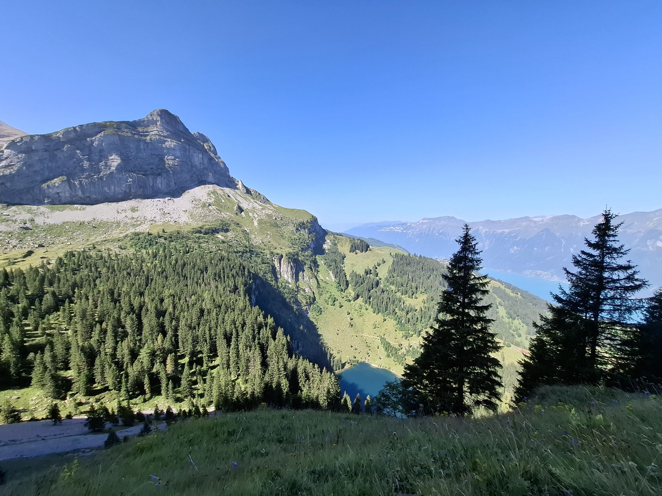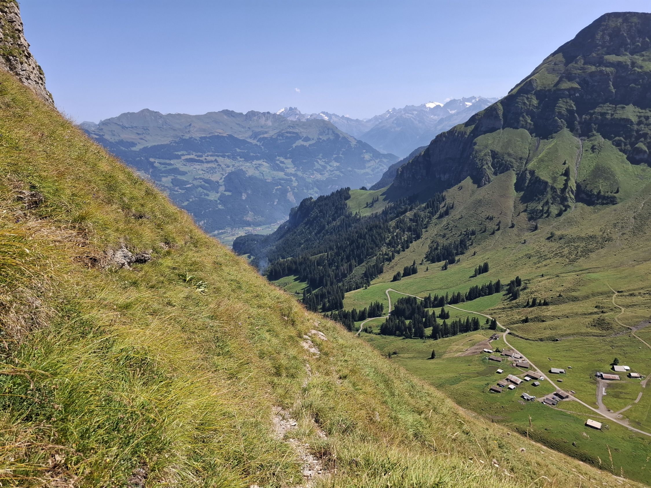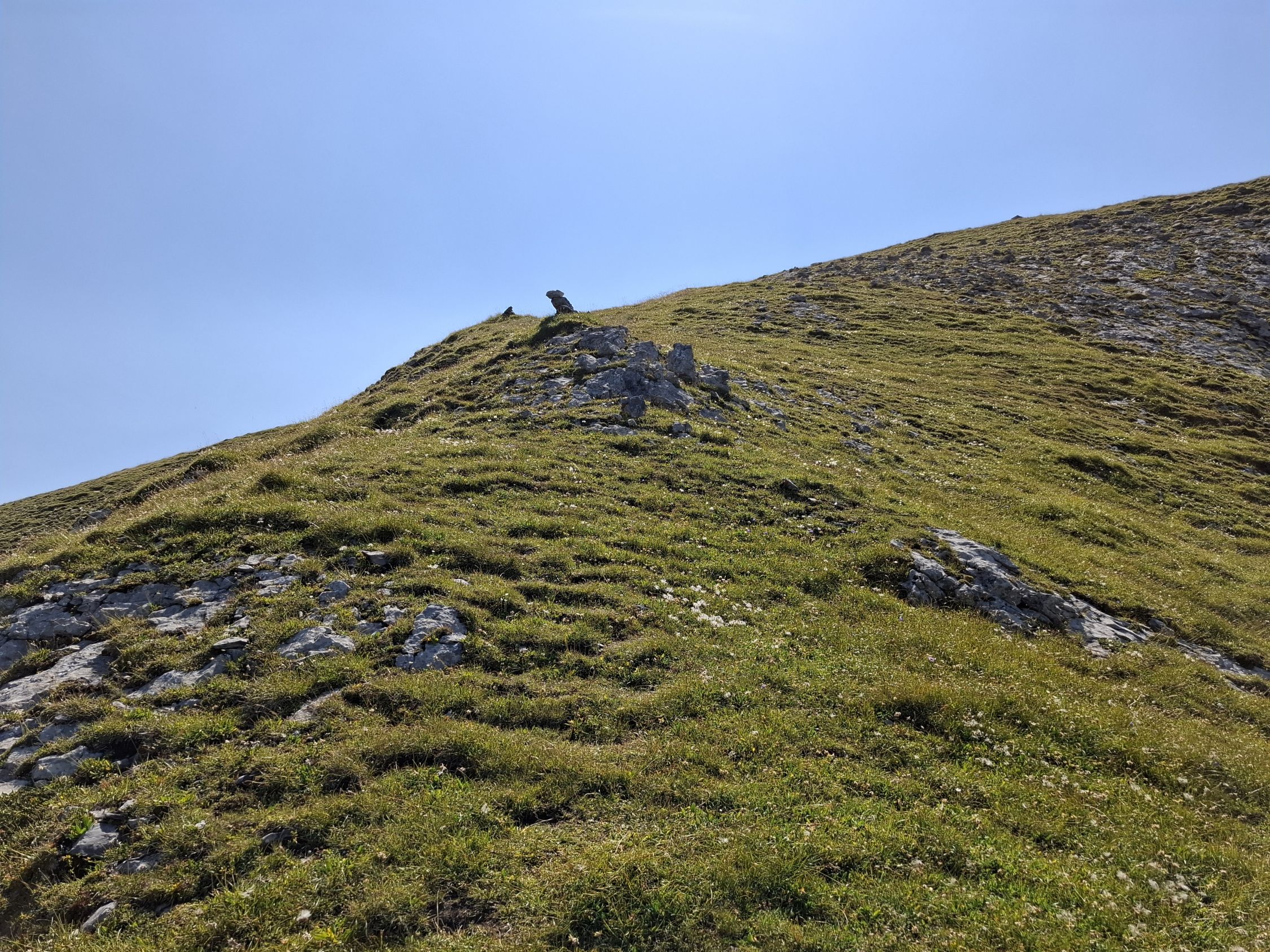 Schönes Wetter und trocken. Beim Abstieg teils angenehmer Wind. Heiss.