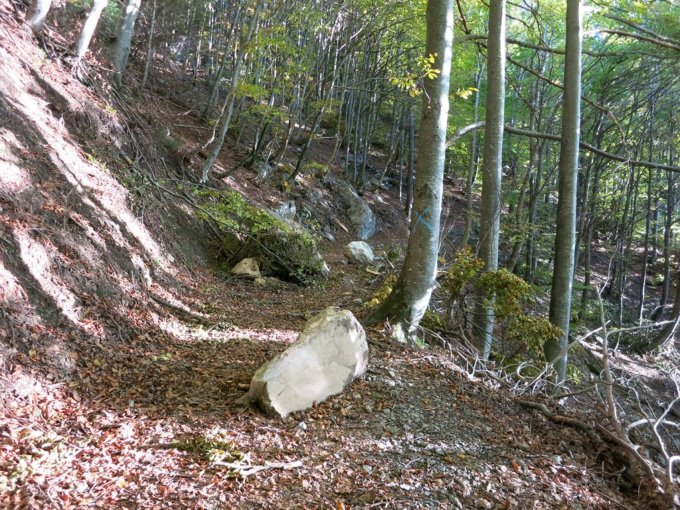 Im Aufstieg durch den Wald liegen einige Male umgeknickte Bäume im Weg; etwas turnen ist angesagt…