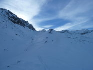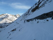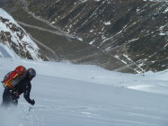 Im Couloir relativ gute Verhältnisse getroffen. Im Couloir rechts - Südhang Exposition - tragbare Unterlage.