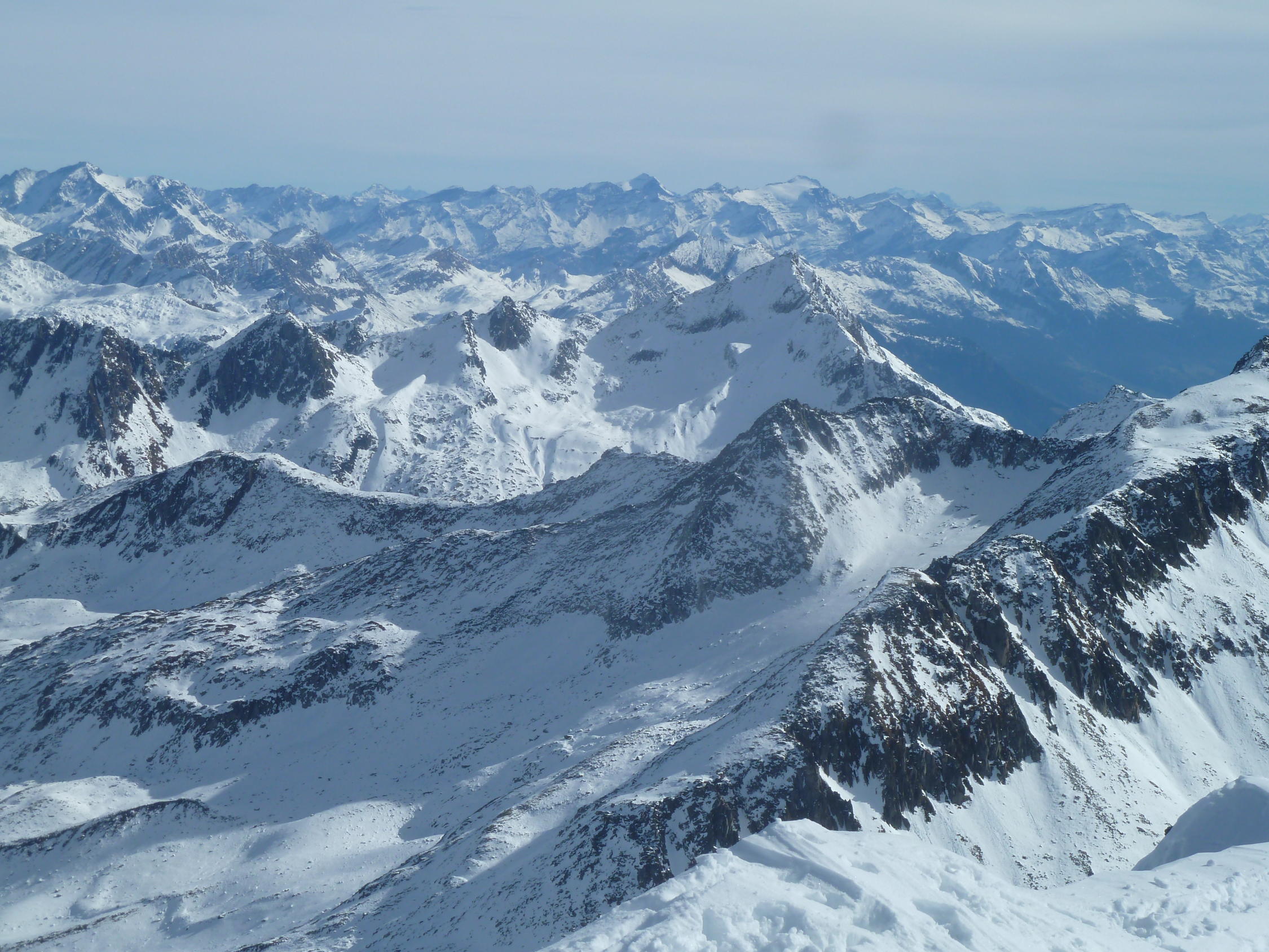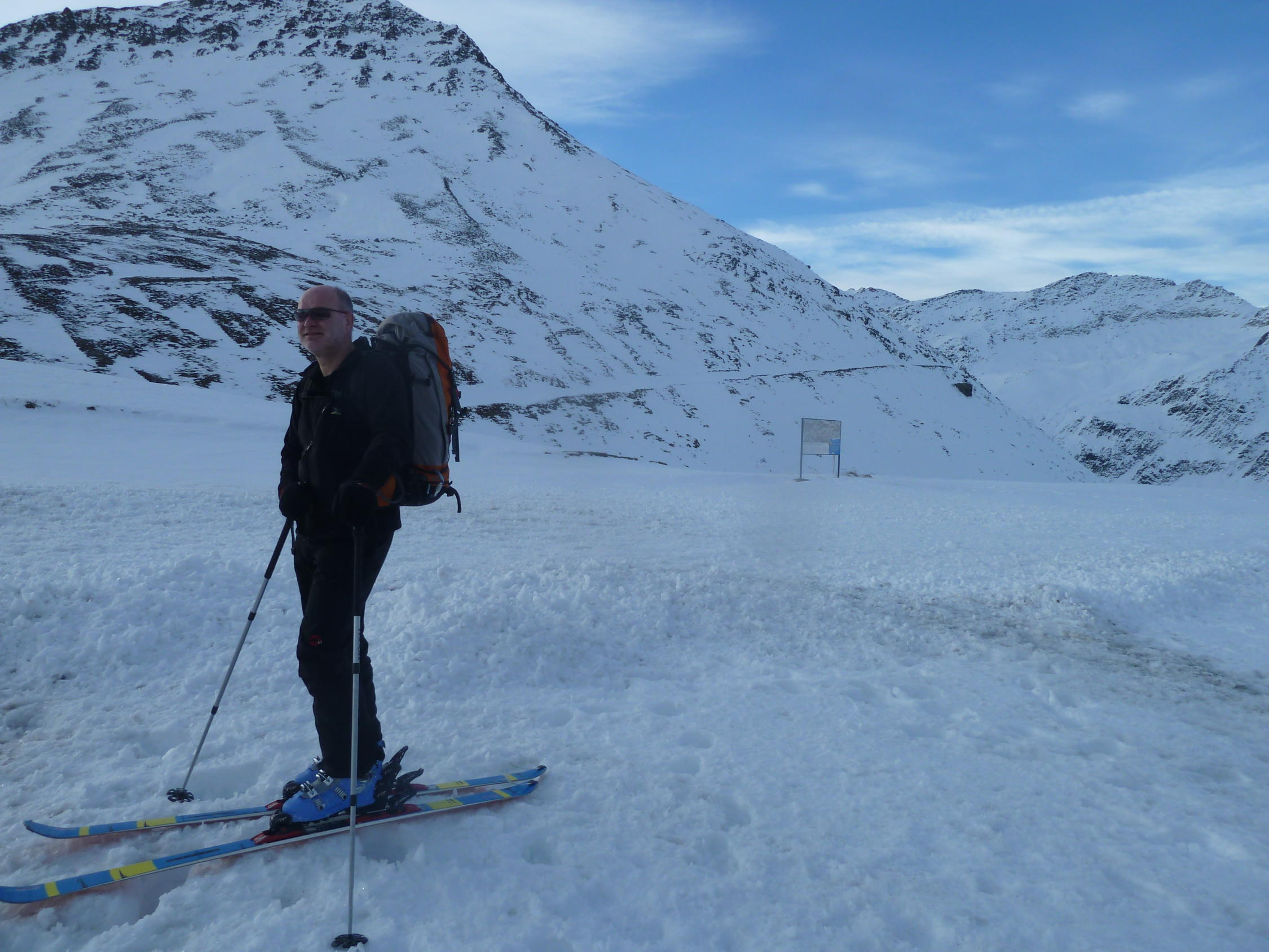Wir sind ohne Skis aber mit Steigeisen auf den Grat. Skis haben leichte Vorteile im Ausstieg sowie bei 1-2 Passagen im Abstieg.