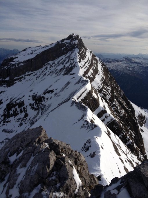 Gipfelgrat gut eingeschneit, aber Trittfirn