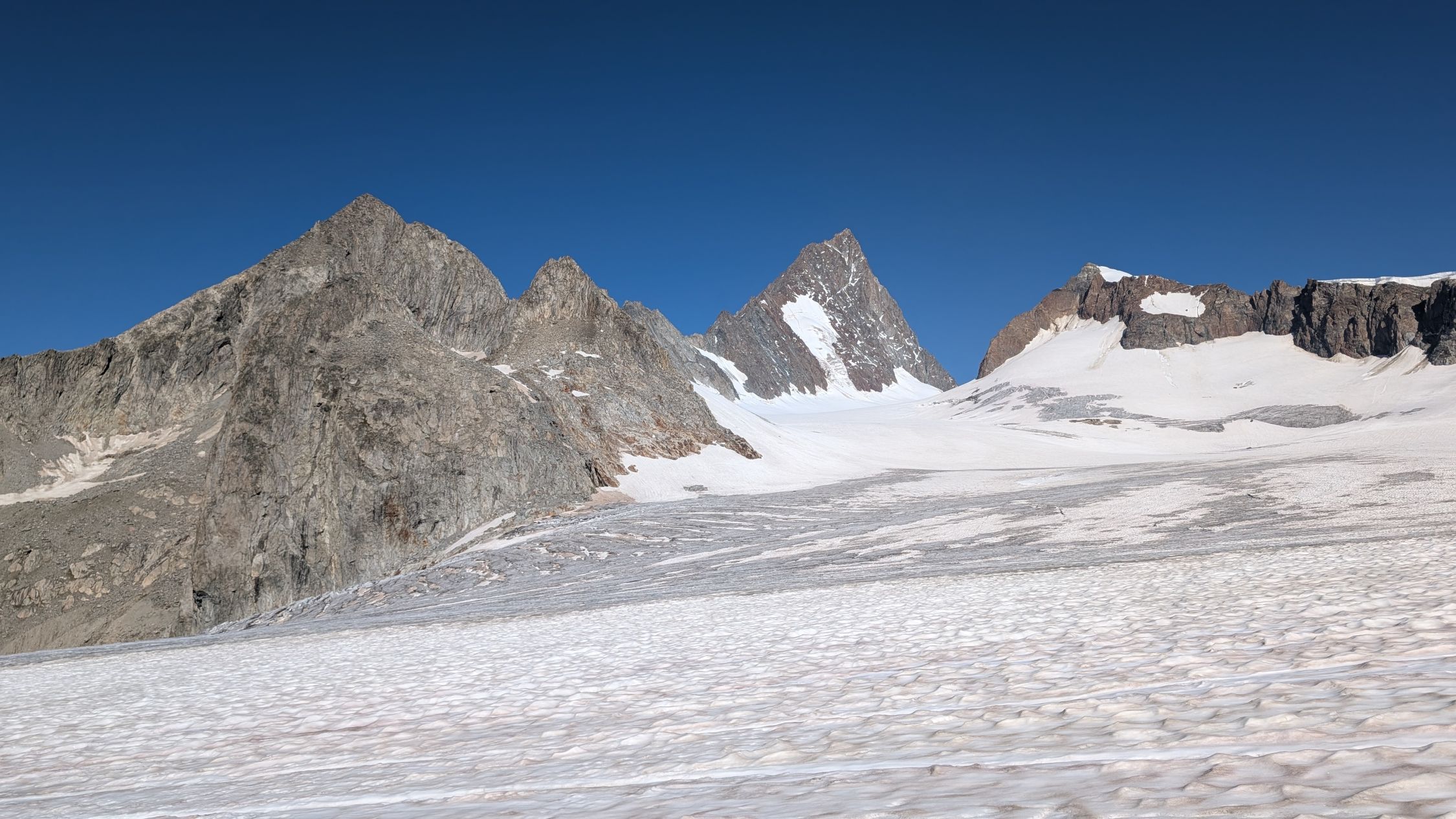 Oberaarhorn hat noch Schnee, ist aber problemlos ohne Steigeisen machbar.