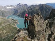 Perron - Vouilloz - I`Ifala Prächtige Grat Ueberschreitung im Unterwallis hoch über dem Lac d`Emosson auf der Grenze Schweiz und Frankreich. Der Grat wunderbaren Granit Fels, und interessante und spannende Kletter Passagen. Auf dem Grat darf man fünfmal luftig abseilen.