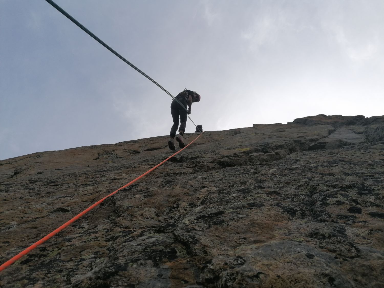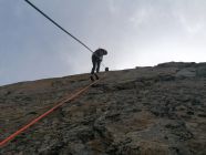 Ausgezeichnet. D.h. Kaiserwetter, besser gehts nicht mehr. Auf dem Grat hatte es immer wieder ein angenehmes Lüftchen. Alle Abseilstellen sind super eingerichtet. Der Grat selbst kann bestens mit Schlingen, Reepschnüren und Camalots abgesichert werden.