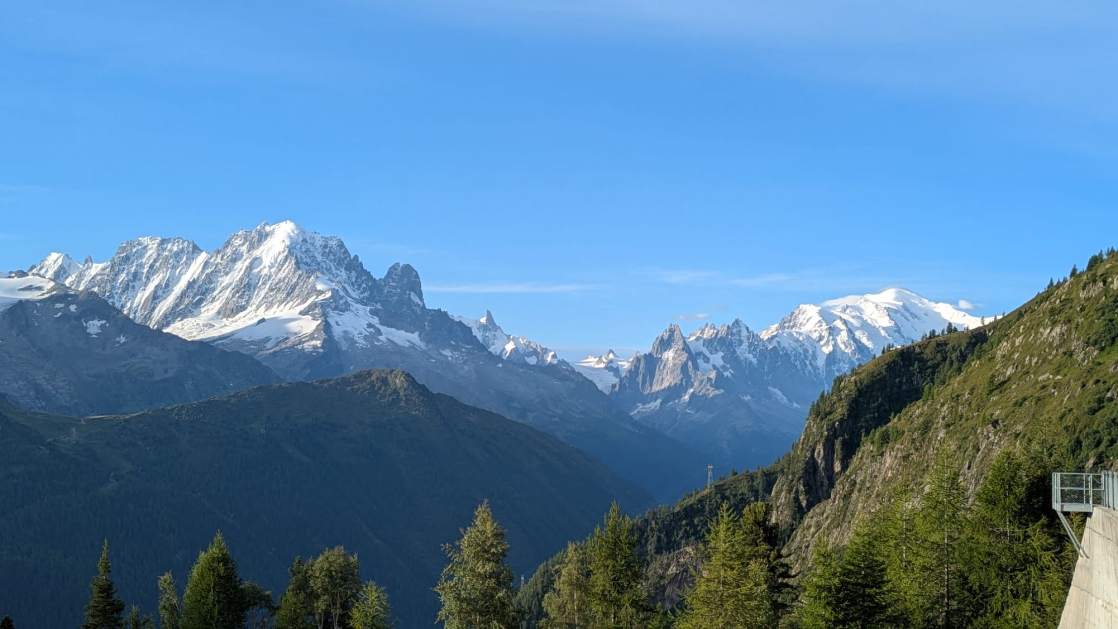 Der Blick ins Mont Blanc Massiv, und die Bergwelt vom Unterwallis ist grandios. Man befindet sich in einer neuen und anderen Welt.