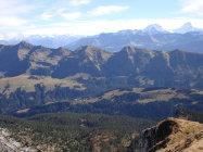 Das Empfangskomitee auf dem Hohgant (4 Schwarzhalsziegen, wovon eine eher eine Braunhalsige) führte uns eindrücklich vor, was Berggängigkeit heisst. Innert wenigen Minuten querten sie auf einem ziemlich abschüssigen Tierwechsel unterhalb der 3 Bären (nicht auf der LK, bei Pt. 2117) hindurch und dann flink hinauf zum Furggegütsch. Da staunten wir nur noch, brauchten wir doch für die Strecke deutlich länger.