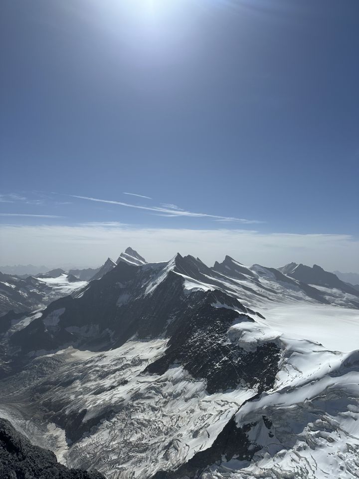Erste Bahn ab Grindelwald genommen. Oben fester Trittfirn