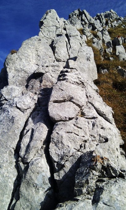 Der Fels war trocken und angenehm temperiert. Das Gras war ebenfalls trocken, da am Grat starker Wind herrschte.