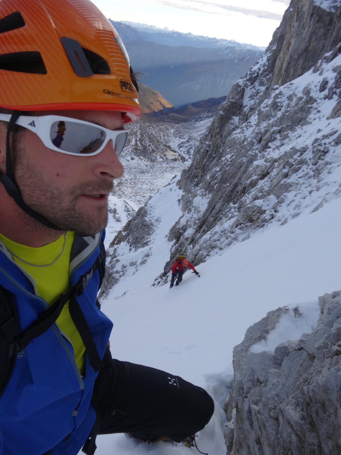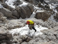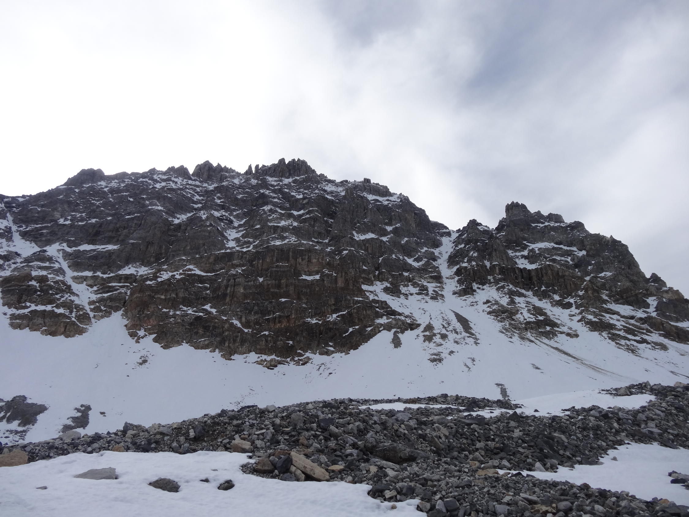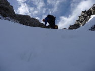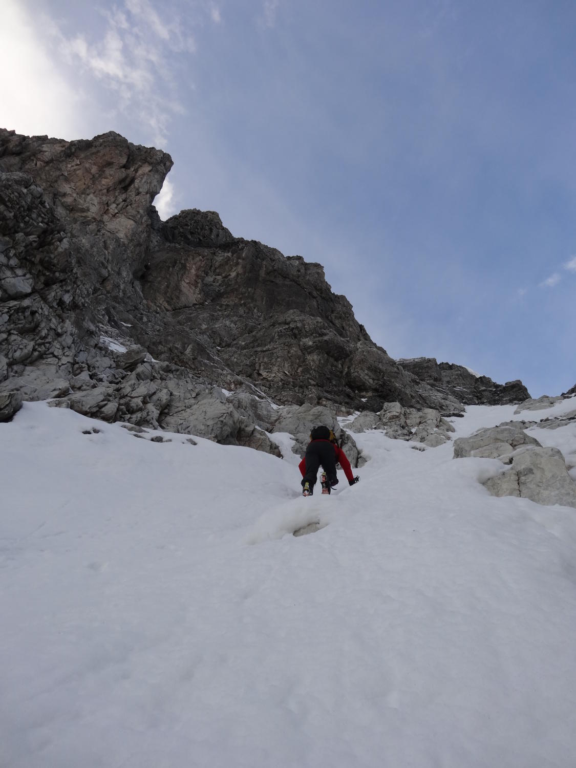 Restschneefelder schon von unten weg. Hart erst ab Mitte Couloir.