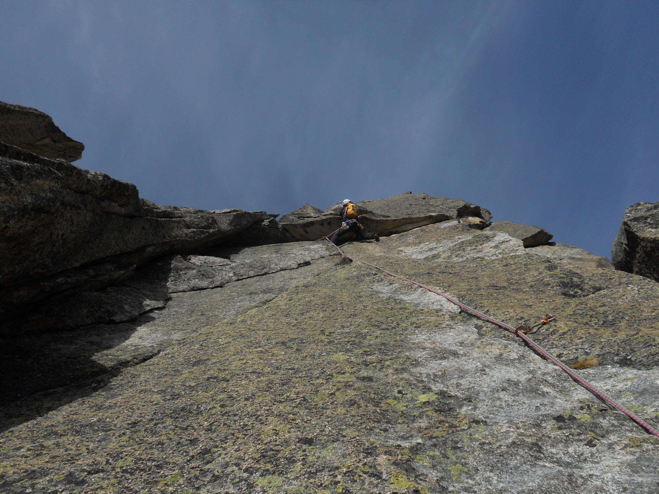 Die Ruska ist eine tolle Tour mit vielen sehr schönen Seillängen und interessanten Kletterstellen. Für mich eher eine leichtere Sportkletter- als eine Plaisirtour. Die Absicherung ist wirklich gut ausgefallen, die BH stecken genau dort, wo man sie am meisten braucht. Dazwischen kann man den einen oder anderen Camalot (0.3-2) legen, viel ist aber nicht nötig. Als sehr lohnend empfanden wir nach der Ruska den Weiterweg über den Südgrat auf den Plattenturm (3-4 SL bis 5c+). Mit Abseilen über Salbitissima und Niedermann kommt man so auch wieder perfekt zum Einstieg zurück.