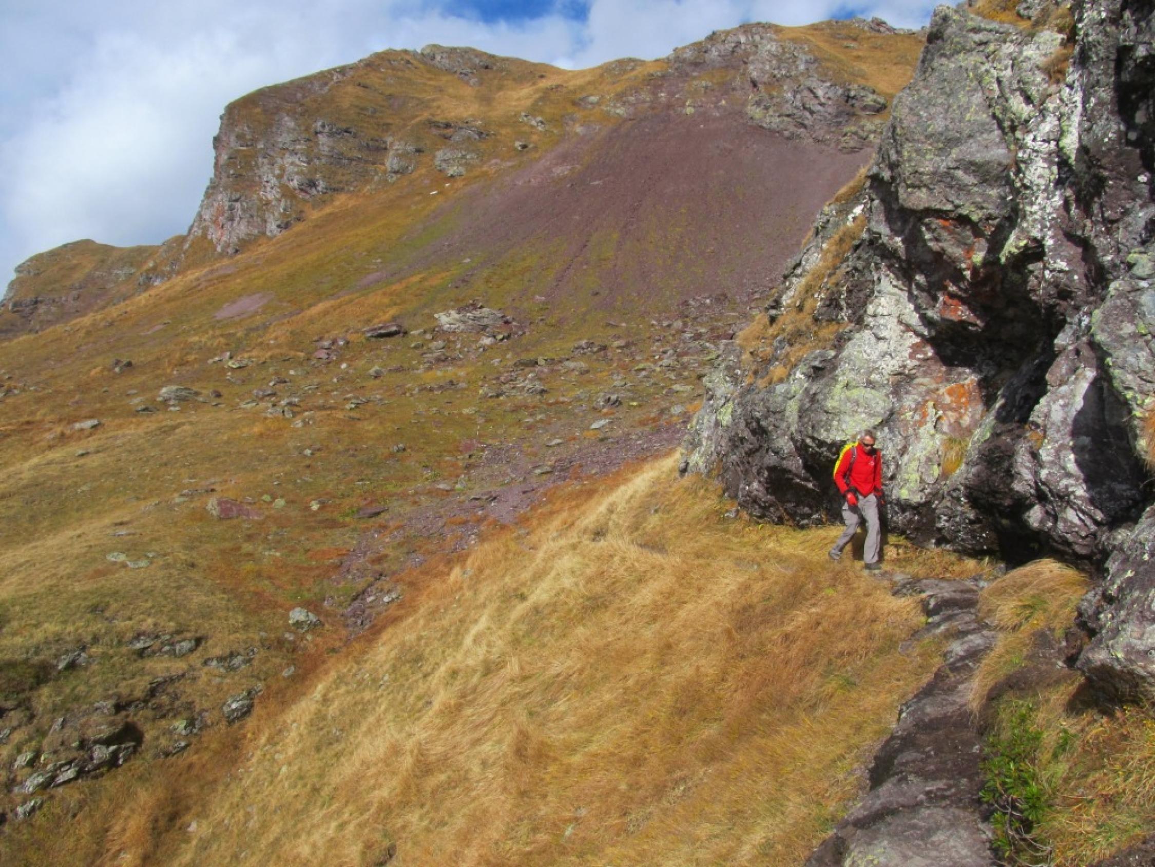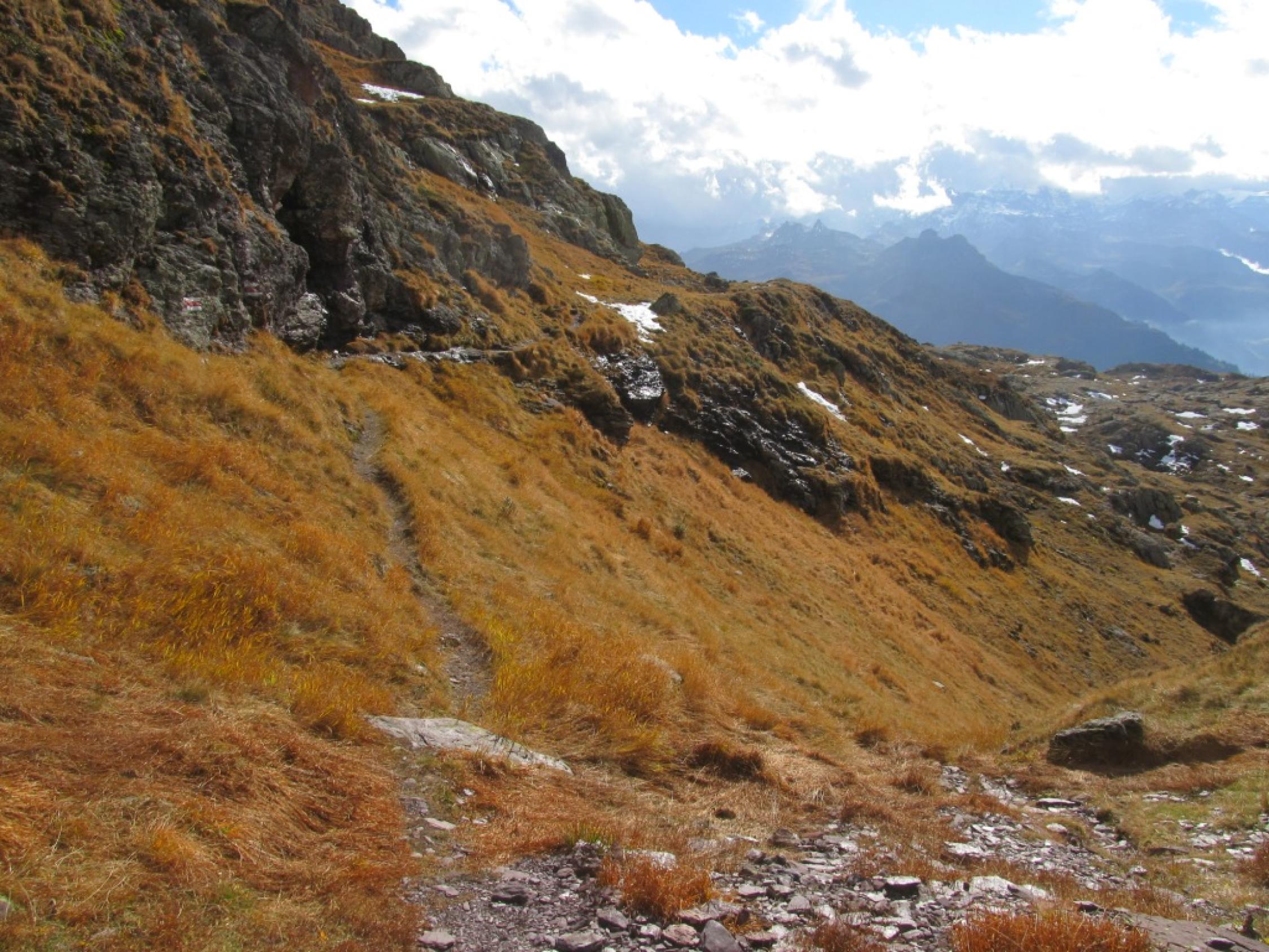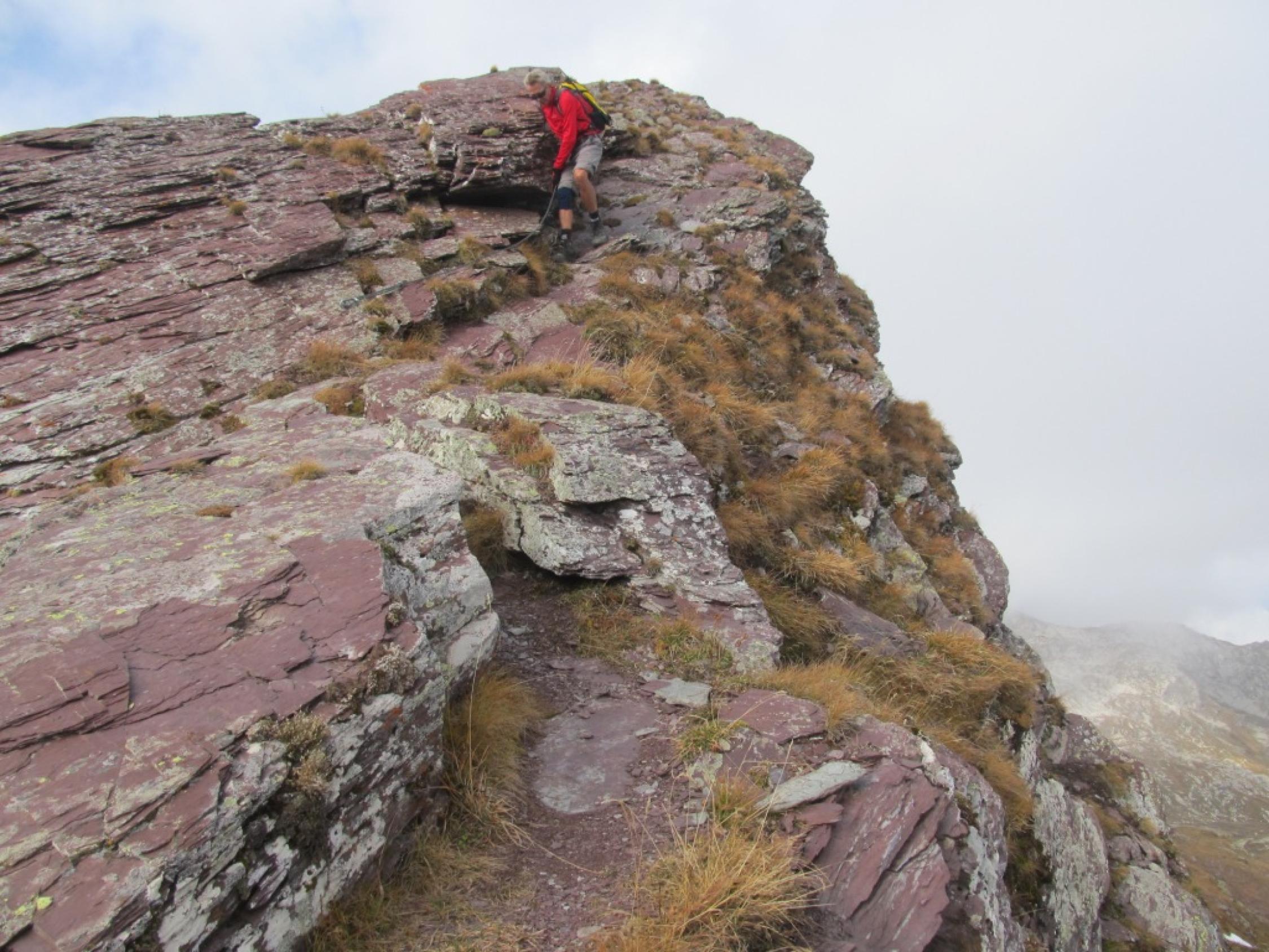 T3 als Bewertung wäre fast ausreichend. Einzig die seilgesicherte Stelle ist nicht ganz jedermanns Sache. Nicht wirklich schwierig, doch etwas abschüssig und luftig.