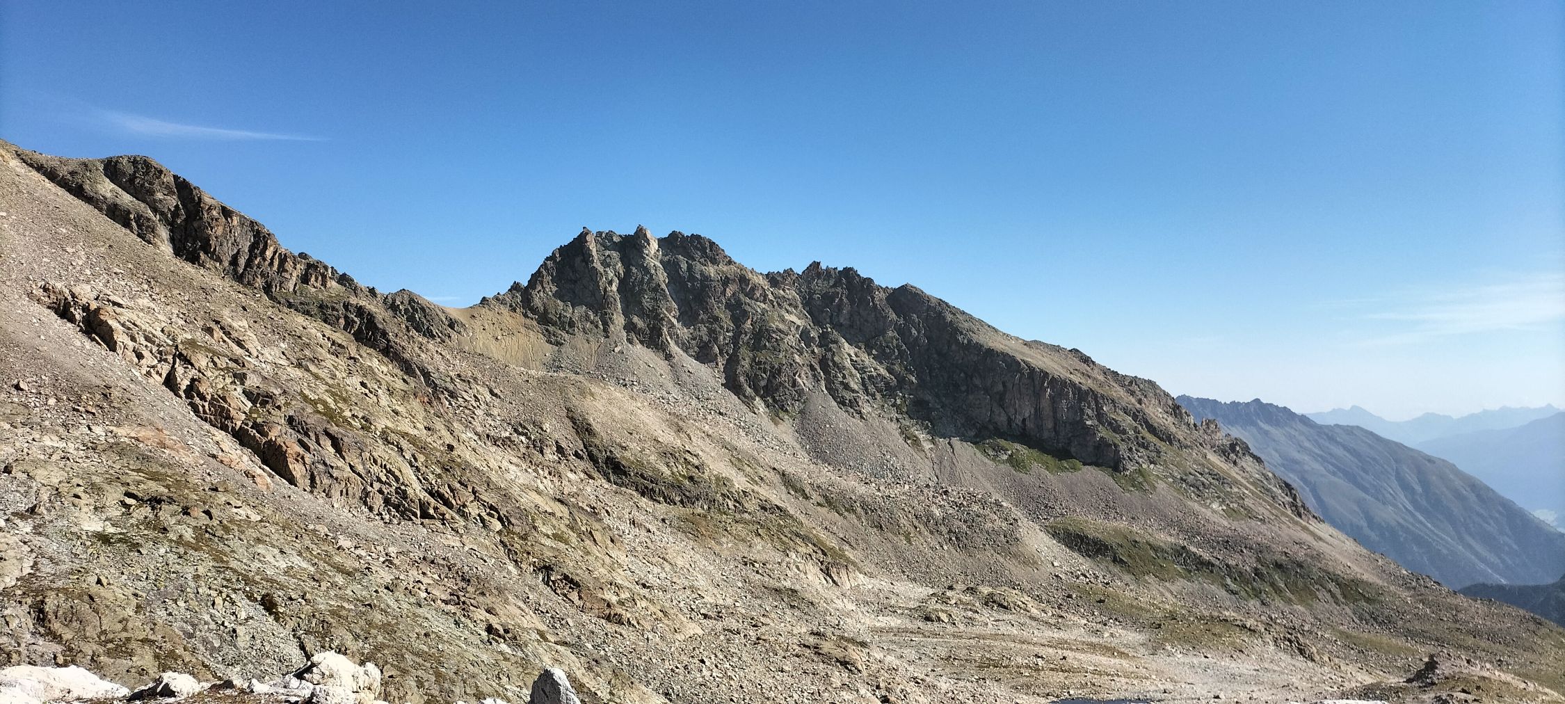 Ein Form schöner Berggipfel, mit toller Aussicht , Blau - weiss markiert am Gipfelhang, mit vielen Ketten, aber nicht überall, und sogar mit Passagen mit einem Geländer, Schlussteil dann doch recht ausgesetzt , sicher kein Berg für Anfänger.