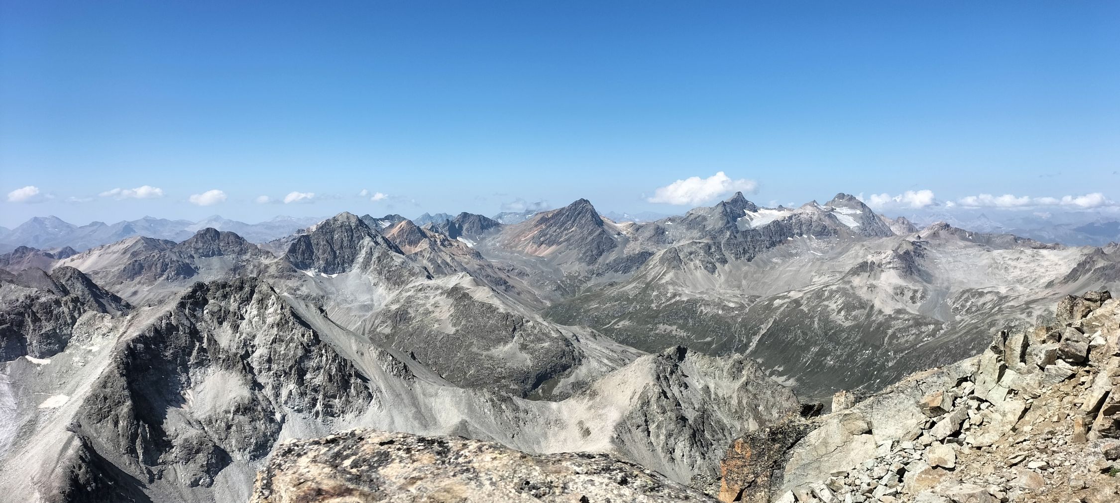 Sehr gute Verhältnisse auf der Route zum Piz Ot angetroffen, alles gut trocken, mit warmen Sommer Temperaturen, gegen Mittag die ersten Wolken beim Abstieg.