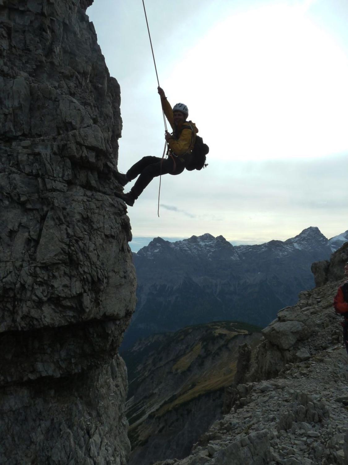 Dieser äußerst selten begangen Ostnordostgart auf den markanten Allgäuer Hochvogel (2592 m) ist eine absolute Liebhabertour solcher alpiner bergsteigerischer Unternehmungen. Eine gewisse Resolutheit gegenüber Bruchgelände und ein gewisses Maß an Fatalismus für die Abseilstellen können hier sicher nicht schaden. Trotzdem empfanden wir alles nicht ganz so dramatisch wie es nach der Beschreibungen im AV-Führer zu vermuten war.