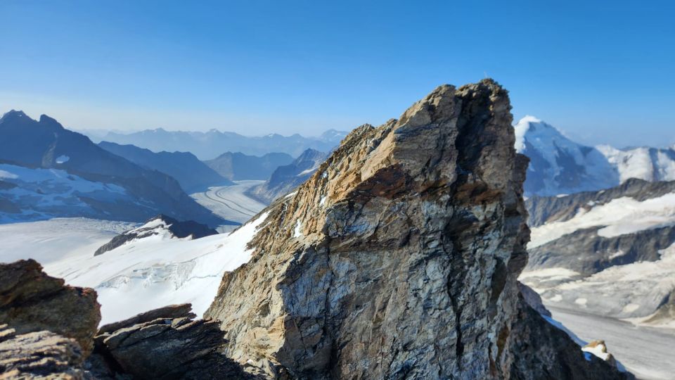 Einsteig über Firngrat super. Aktuell mehr klettereien, da wenig Schnee liegt. Route anhand der Beschreibung. Alpines Sichern über den gesammten Grat, weitere Sicherungsmöglichkeiten kaum vorhanden. 30m Seil ausreichend, wer will sichert zusätzlich mit mobilen Geräten. Kleiner Felssturz lassen ca. In der Mitte bei einem Turm den Einstieg in die Kletterei verändern (gerölliger, loser, schwieriger). Der Grat ansonsten Perfekt. Beim Ausstig direkt nach Turgberg ist der Bergschrund sehr gross, Abseilen in der Steinstufe notwendig.