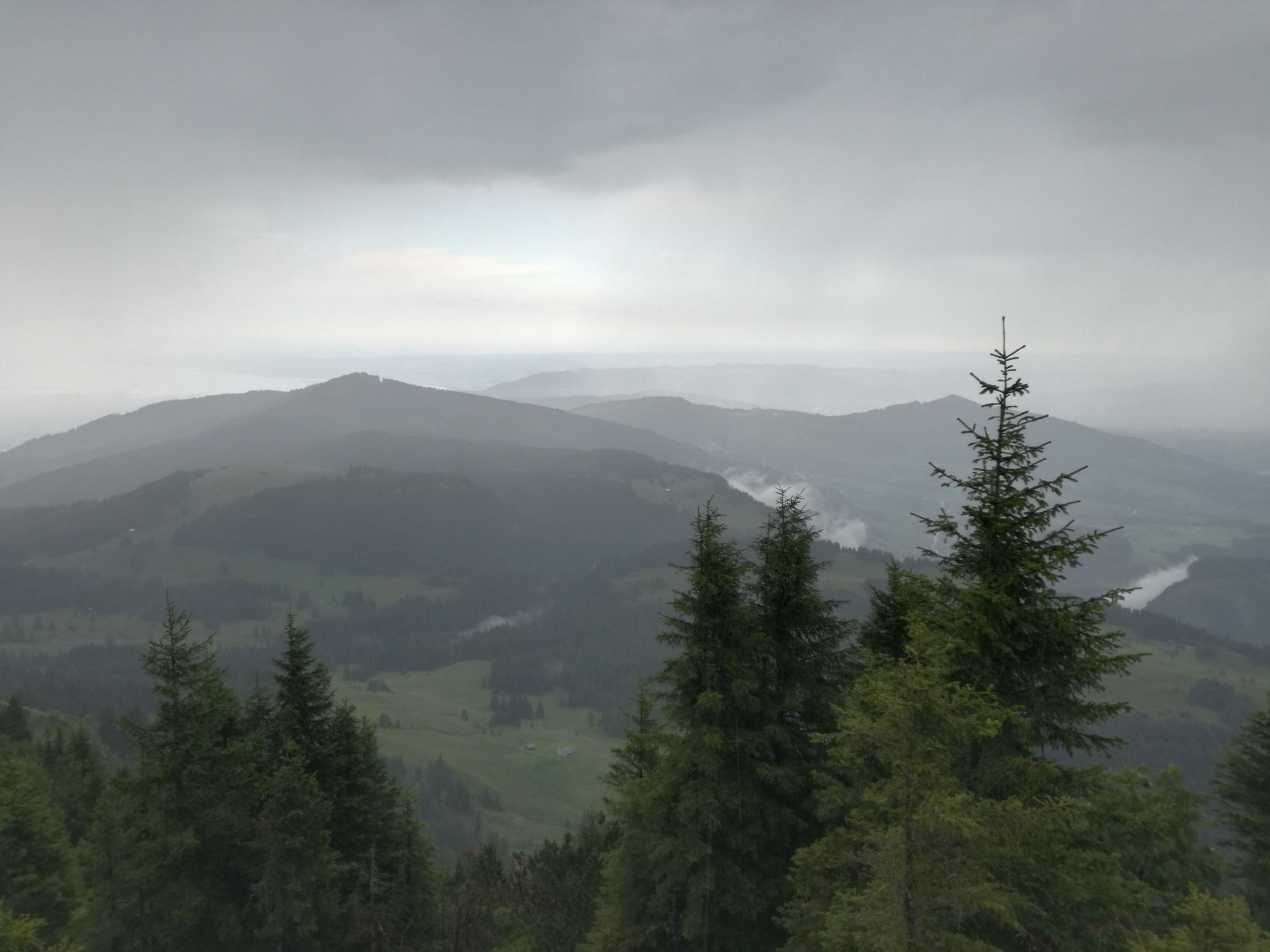 6 Uhr Start am Bödele - Gräsakopf - Weißenfluh - Rohralpe - Hangköpfle -Hangspitze- zurück über Hochälpele. Von 8-10 Uhr Gewitter+Starkregen -danach Übergang zu Sonnenschein.