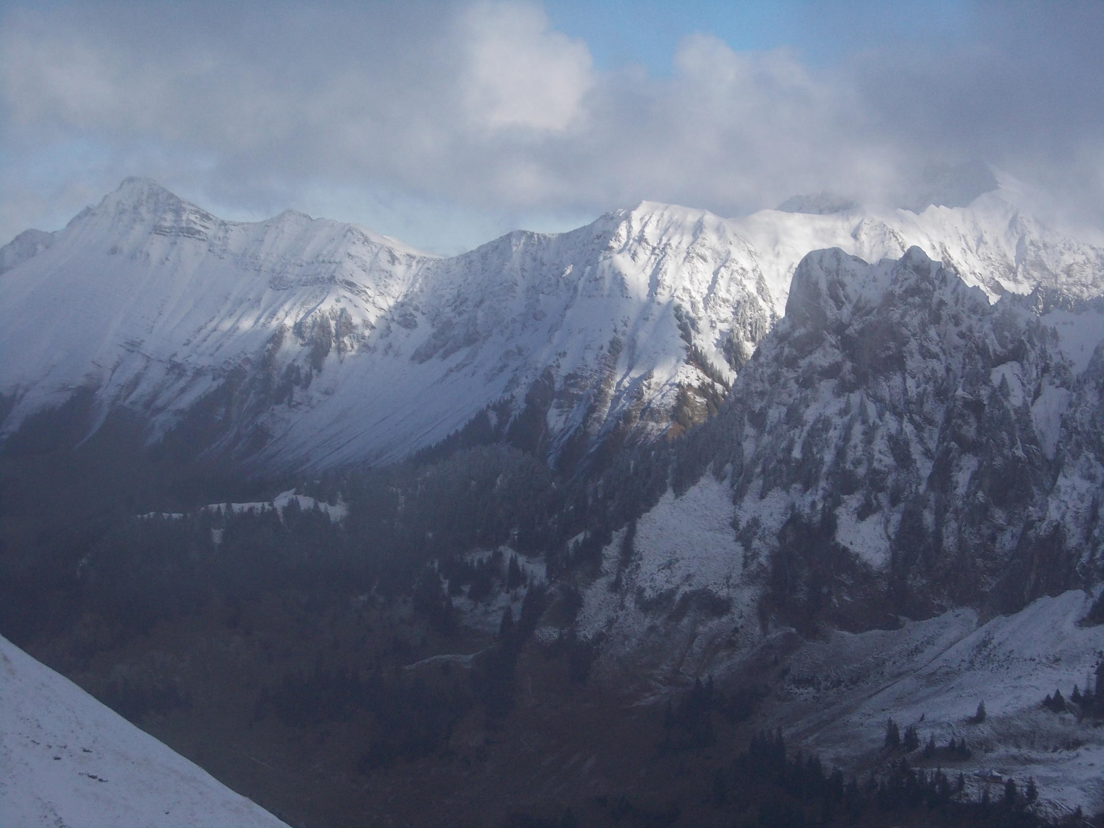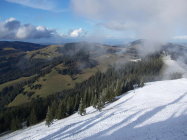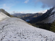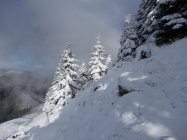 Aufstieg: Die Kontraste hätten unterschiedlicher nicht sein können. Bis Ober Recardets schneefrei aber nass. Ab hier 1500m begann der Schnee. Die Schneehöhe betrug 10 - 30cm.