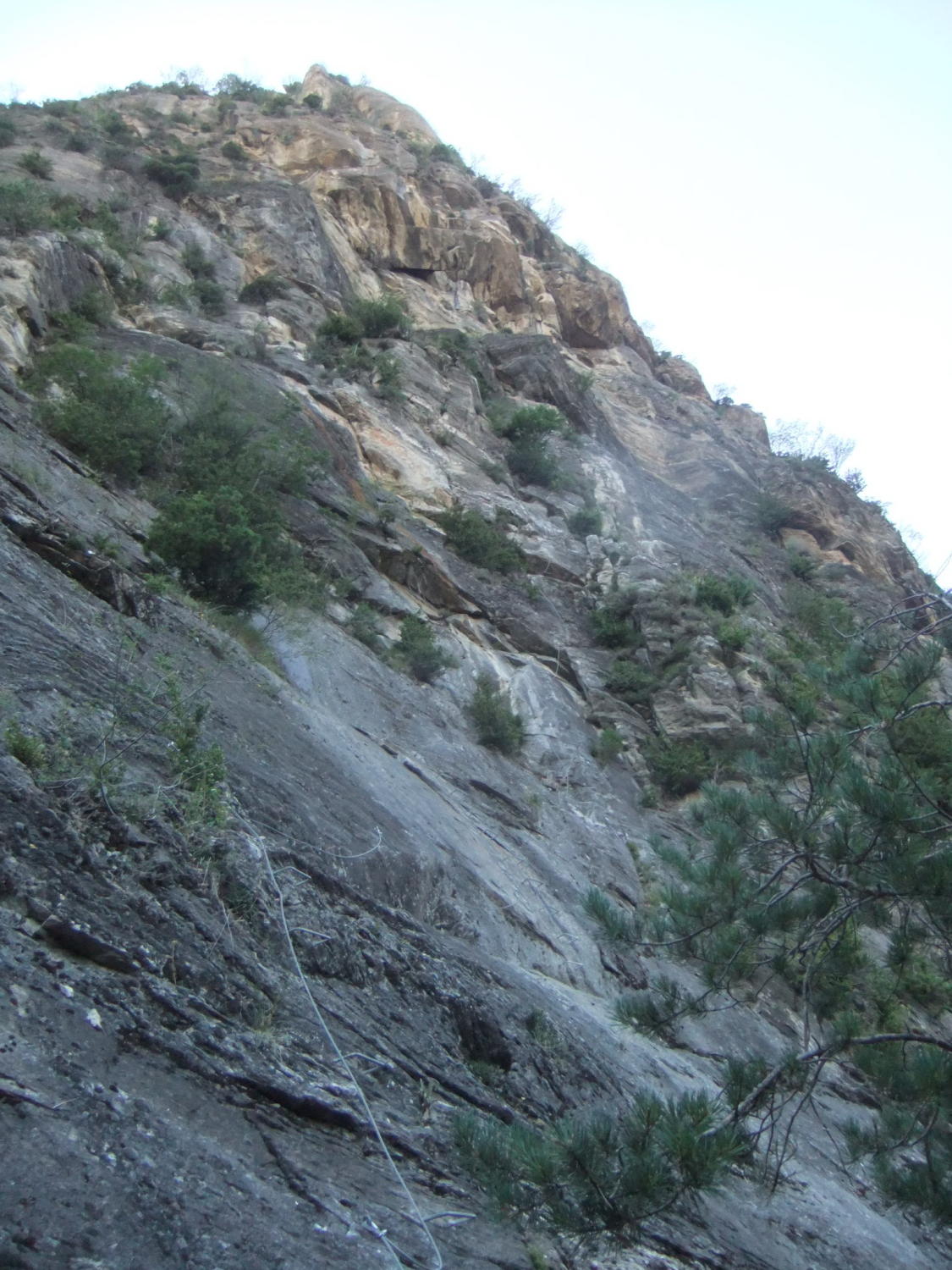 Einstieg um 18:30 Uhr in die Ostseite, Abstieg in der Abendsonne.
