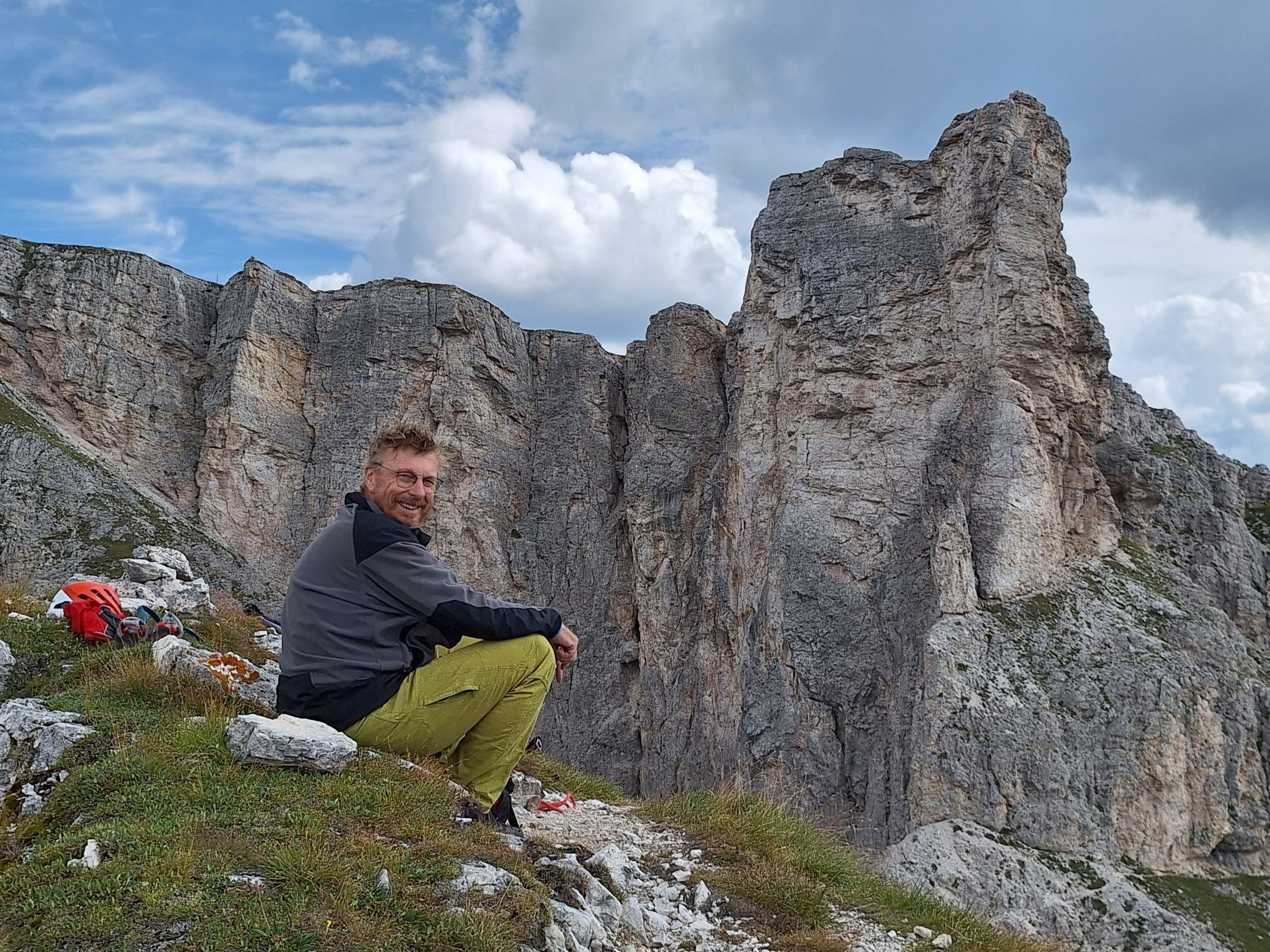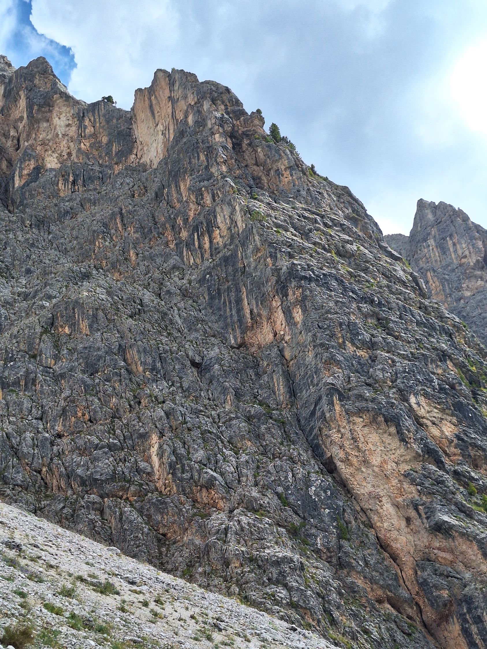 Vor der Rifugio Firence kurz über den Fahrweg absteigen, bis der Weg zur Furcola dia Piza (Pizascharte) abzweigt. Über den Steig ca. 20 Minuten aufsteigen, bis bei ca 2100m, bei einem großem Felsbrocken, in südliche Richtung folgen bis dieser den tiefsten Punkt der Westkante erreicht. Nun links den Wegspuren ca. 30 Höhenmeter ansteigen bis zum Einstieg an einem goldenen Bold.
