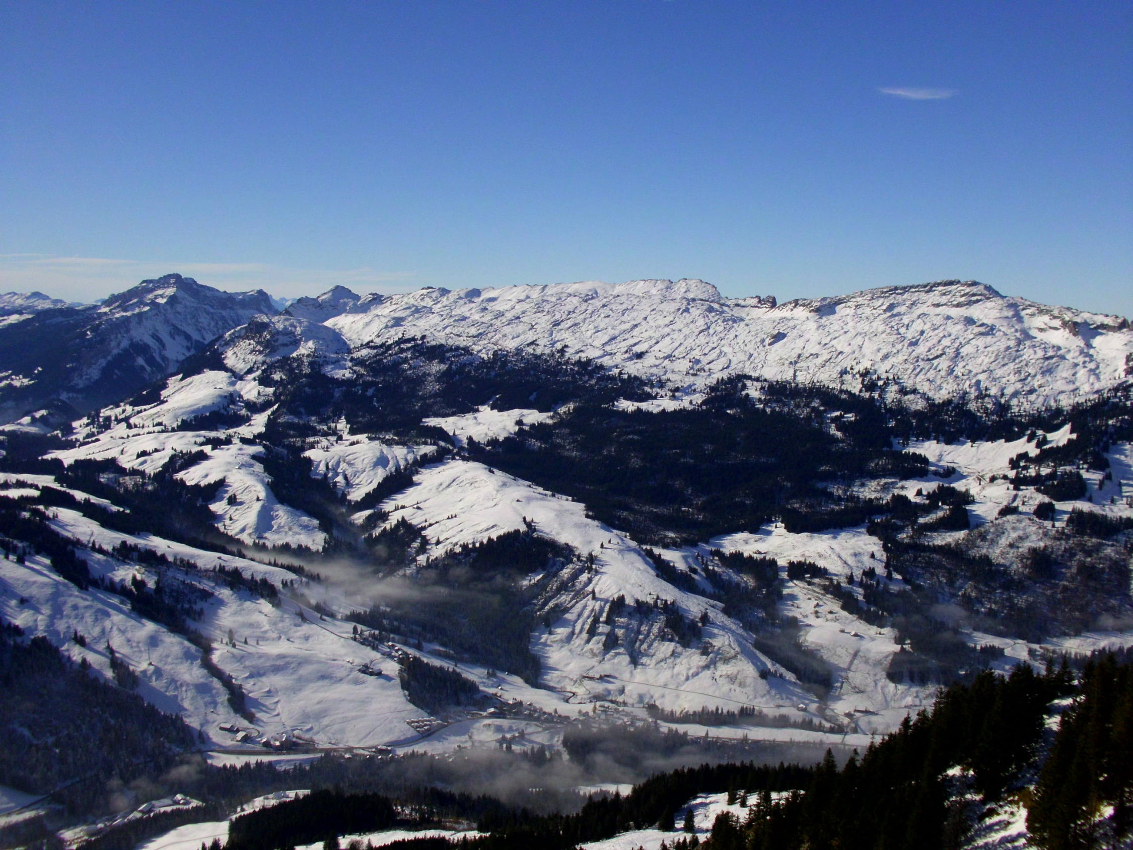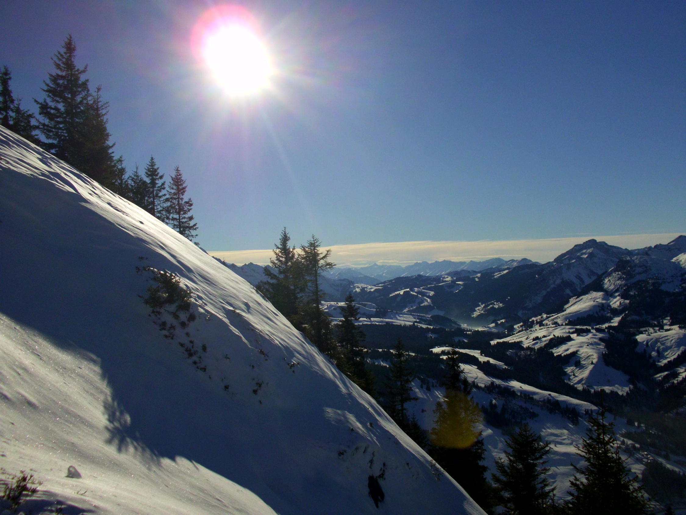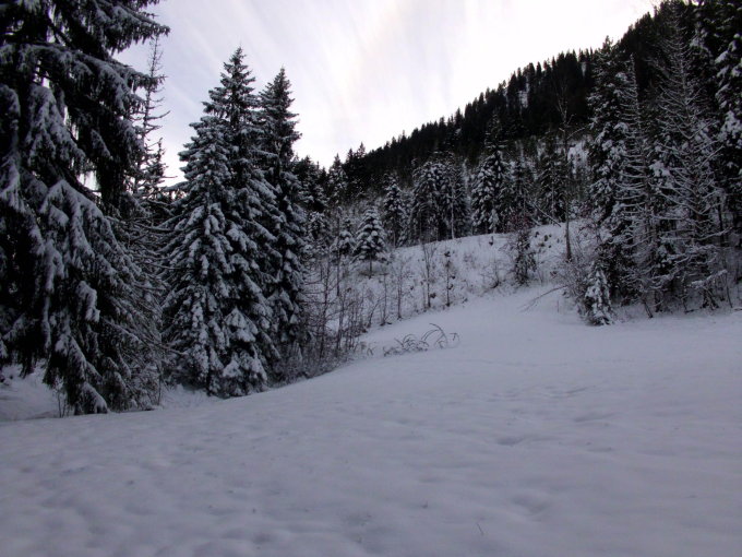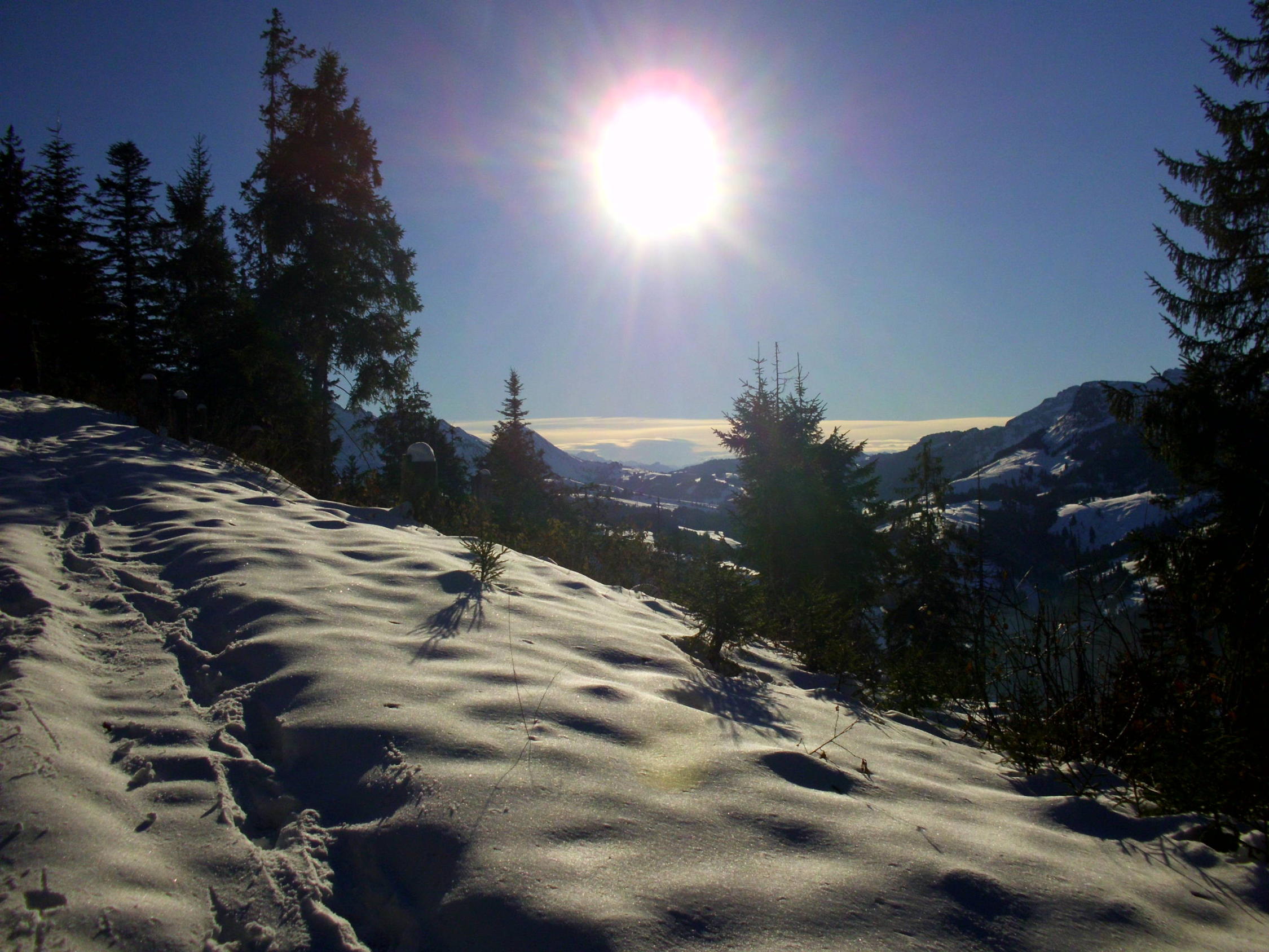 Für mit Ski noch zuwenig Schnee (wird sich ab Mittwoch ändern).