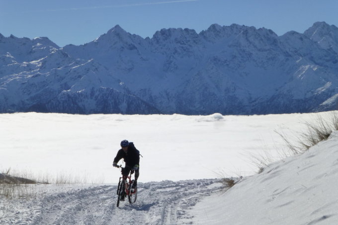 Mit Nebelgrenze ab etwa 1900m, mussten wir oben gehen, schnee ist besser mit Ski, sondern auch mit dem Fahrrad hatten wir als Kinder Super-Panorama von Monte Rosa bis Michabel Bernina, Adamello und Presanella