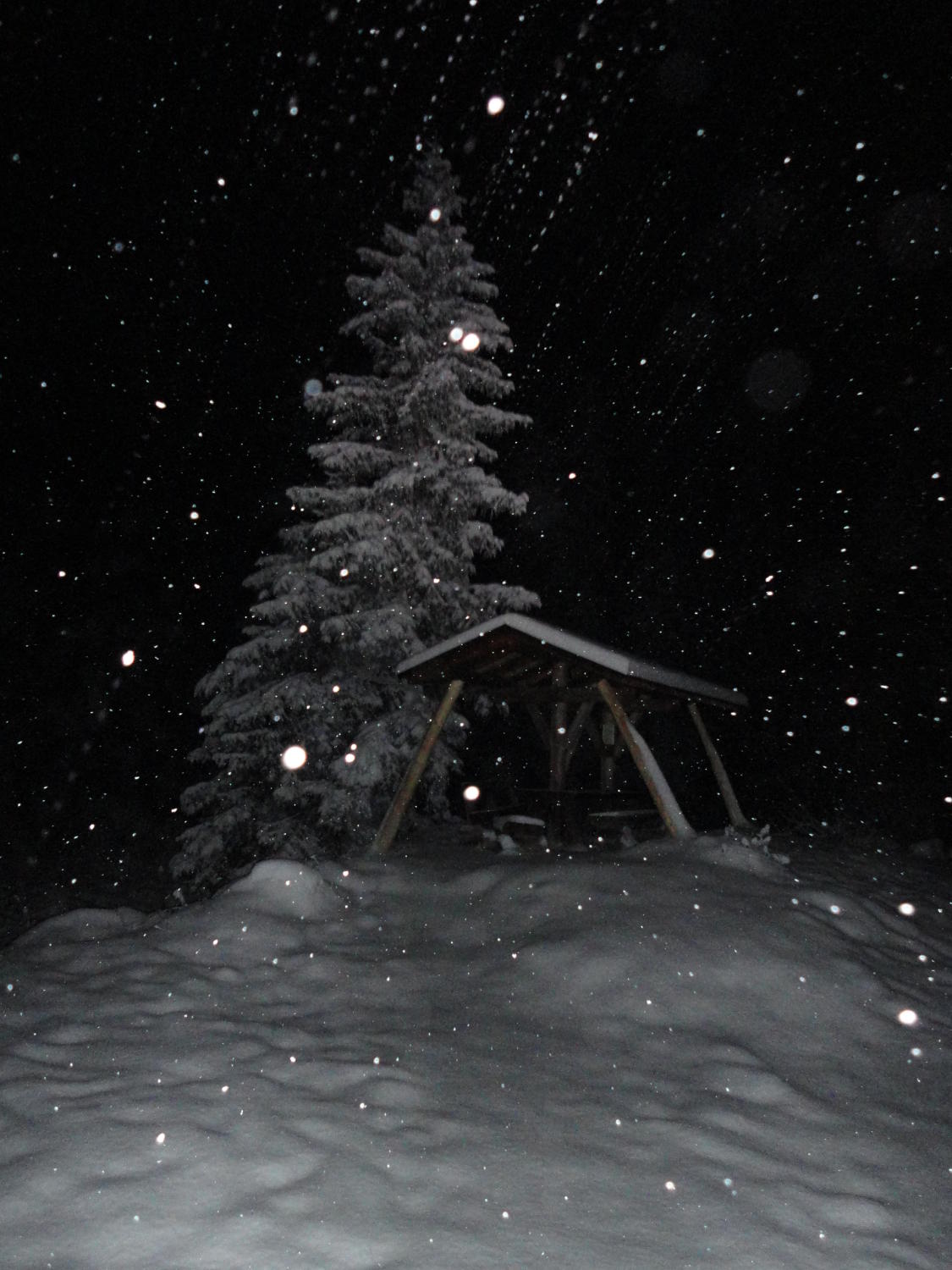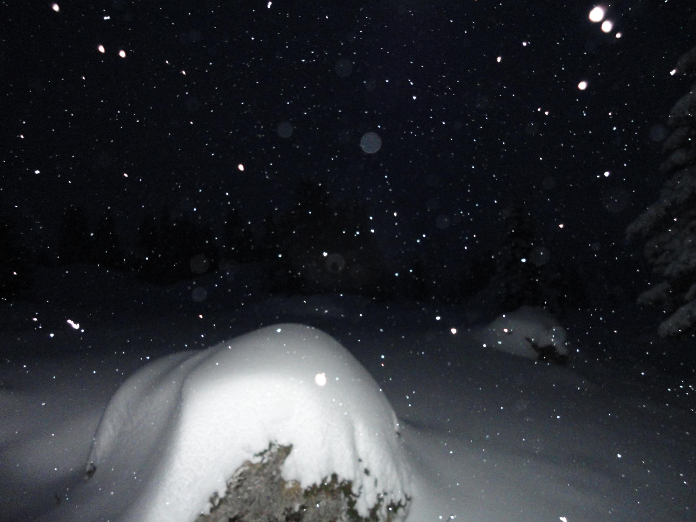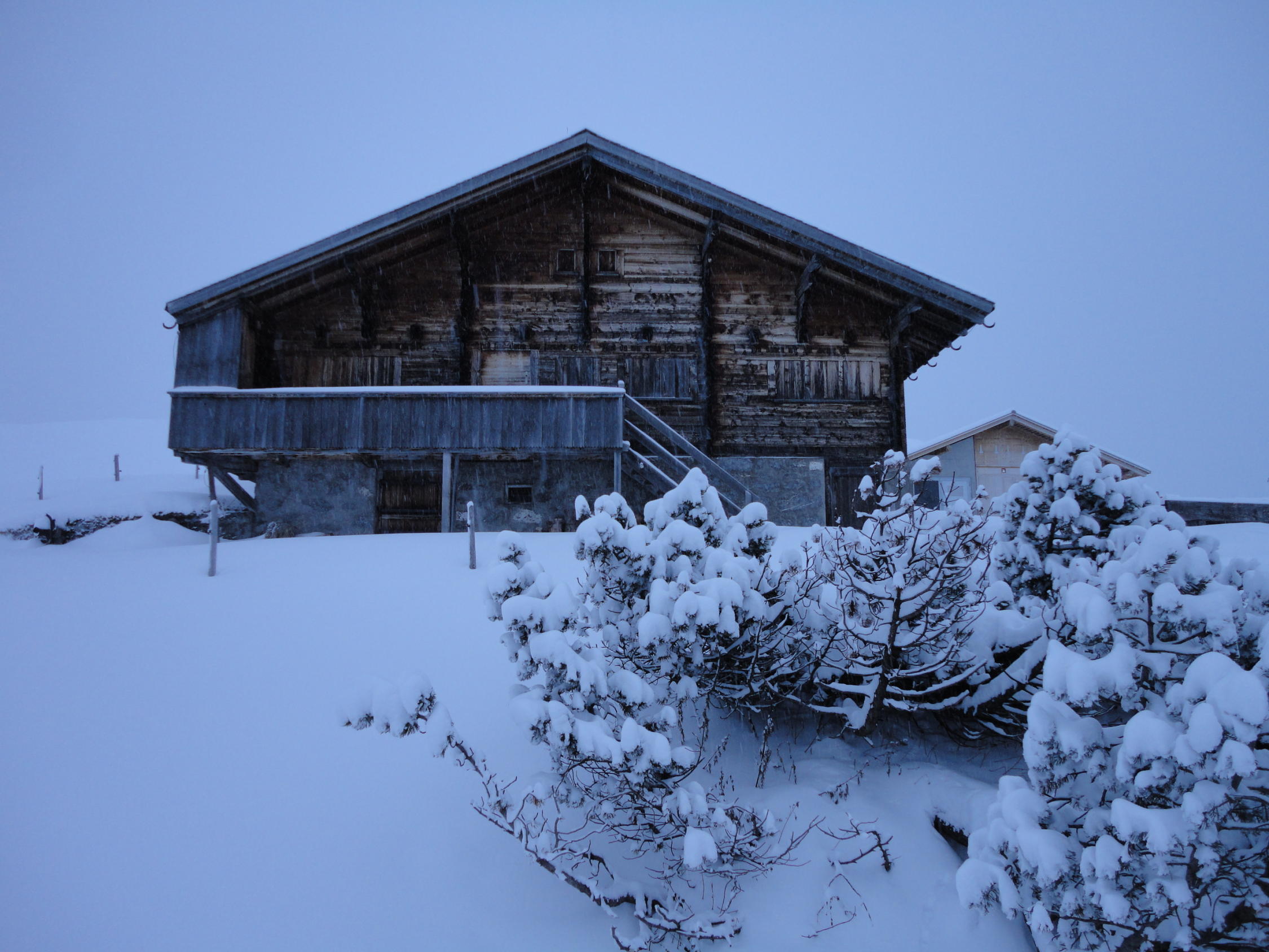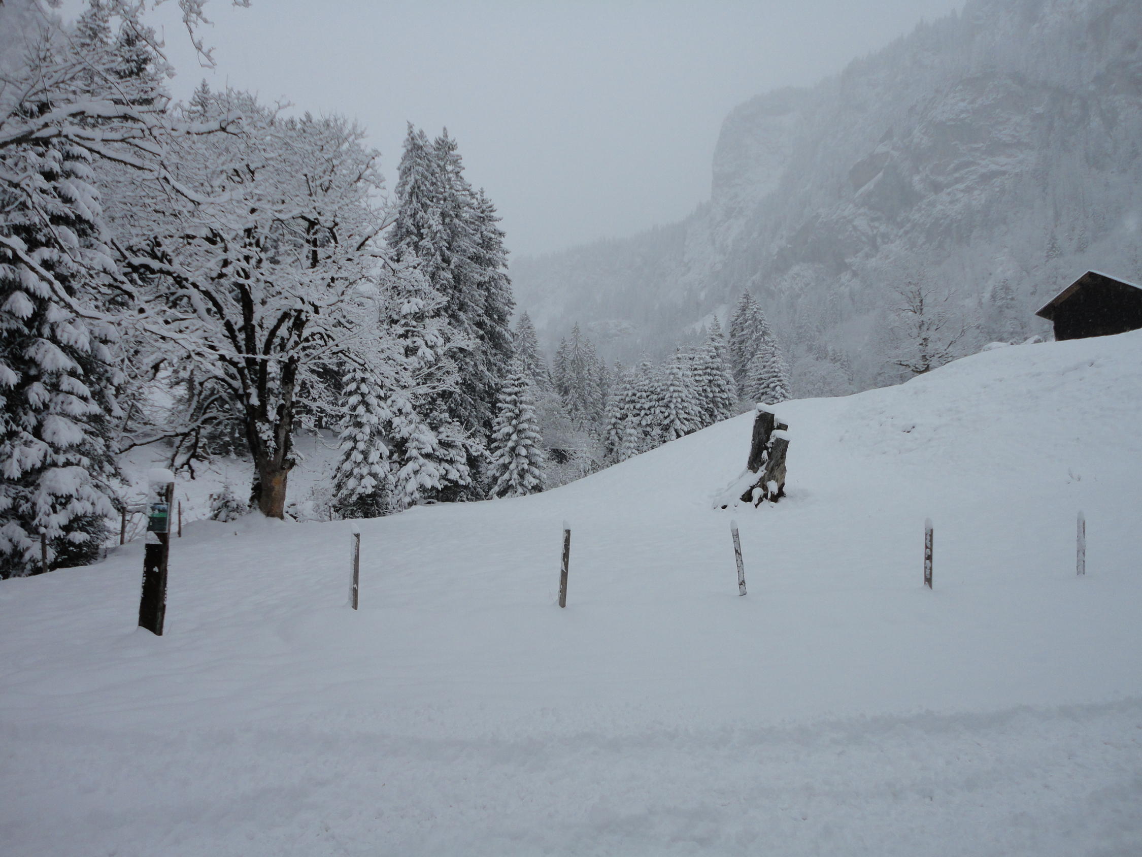 Schneefall und etwas mehr Schnee als auf denm Gurnigel, wobei bei der Abfahrt gleichwohl aufpassen ( verschneite versteckte Steine)