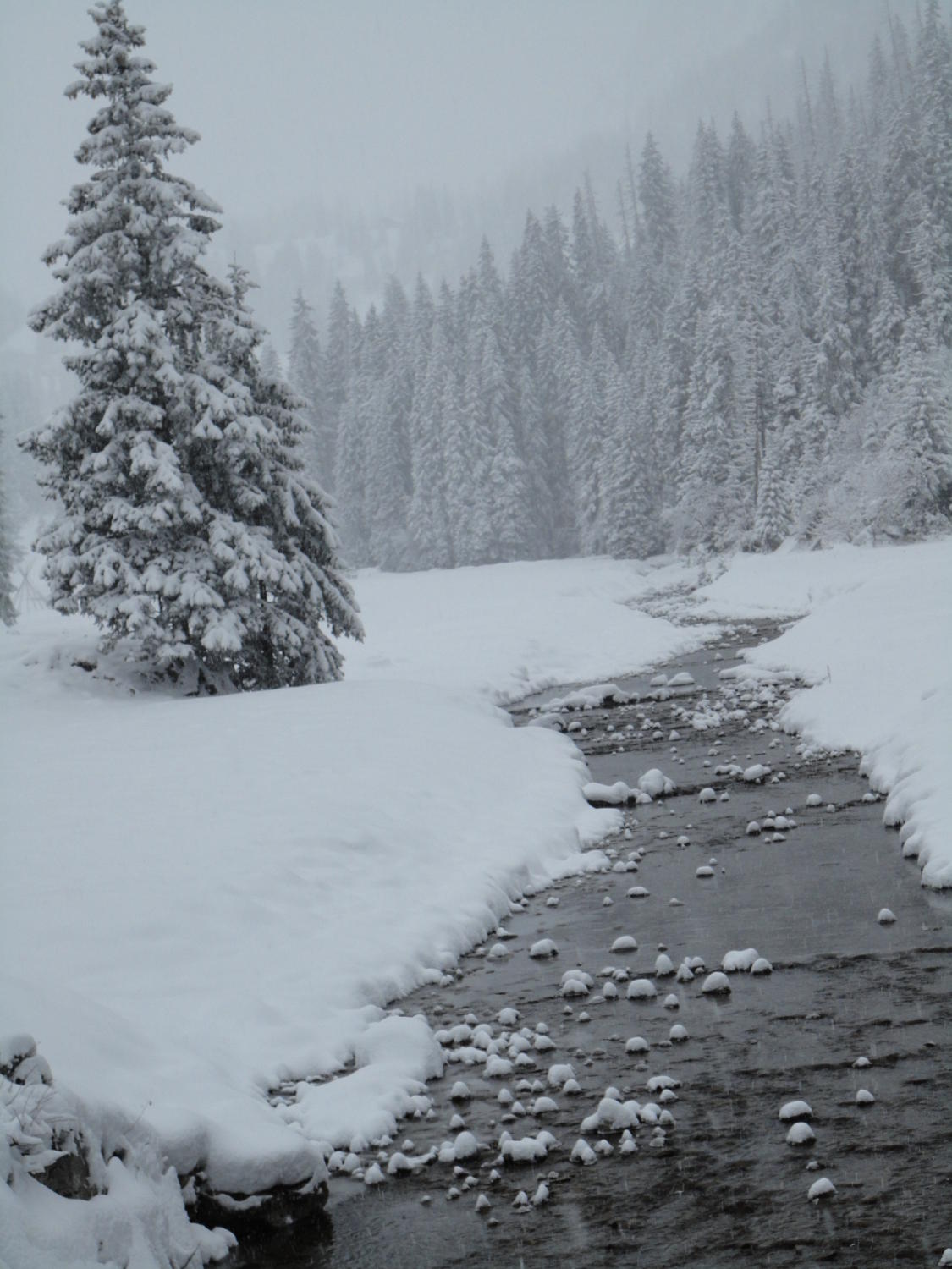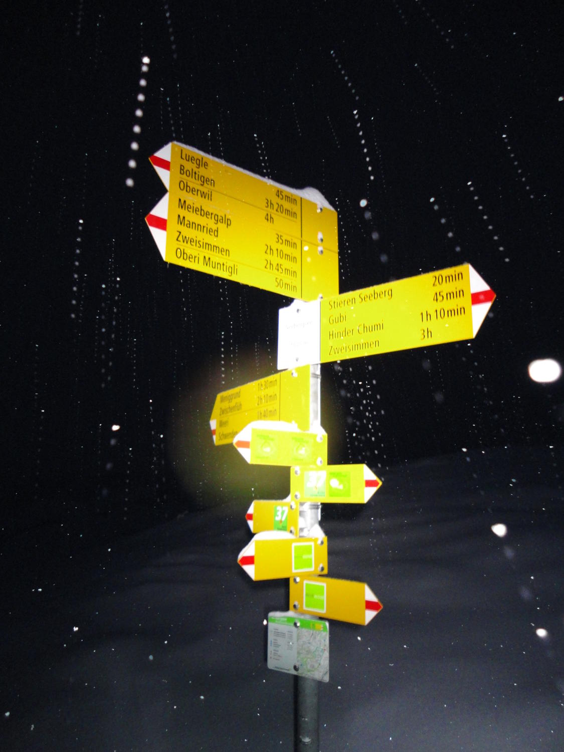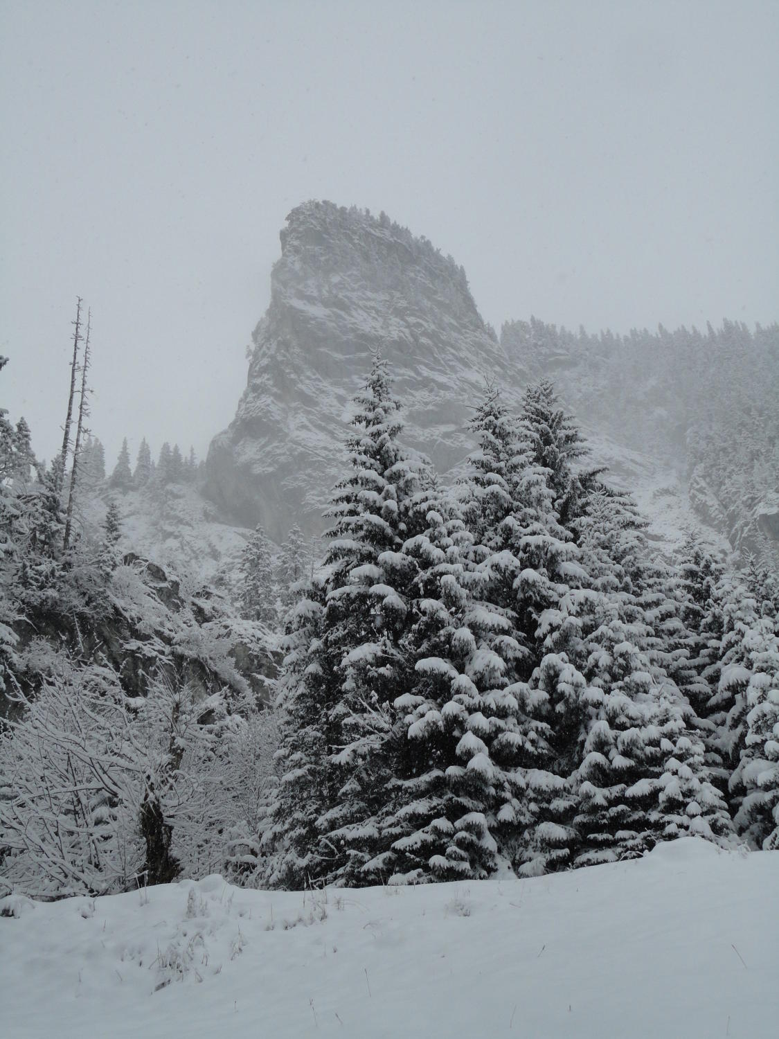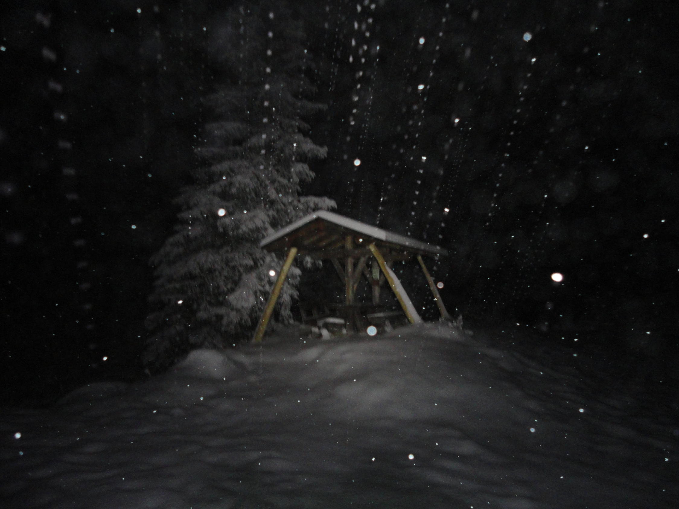 Schneefall und etwas mehr Schnee als auf denm Gurnigel, wobei bei der Abfahrt gleichwohl aufpassen ( verschneite versteckte Steine)