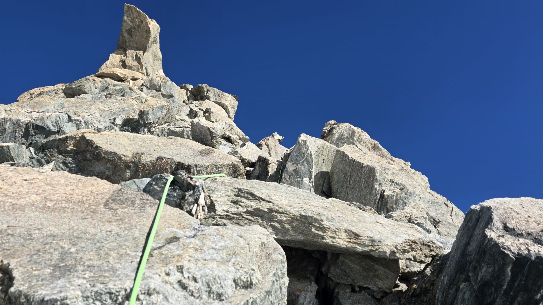 Super Verhältnisse am Grat. Alle Felsabschnitte schneefrei. Der Schneegrat hat eine gute Spur. Kurz vor dem Ende des Grats gibt es nochmals einen steilen eisigen Aufschwung, der mit den Frontalzacken geklettert werden muss. Ist ist Vorsicht geboten.